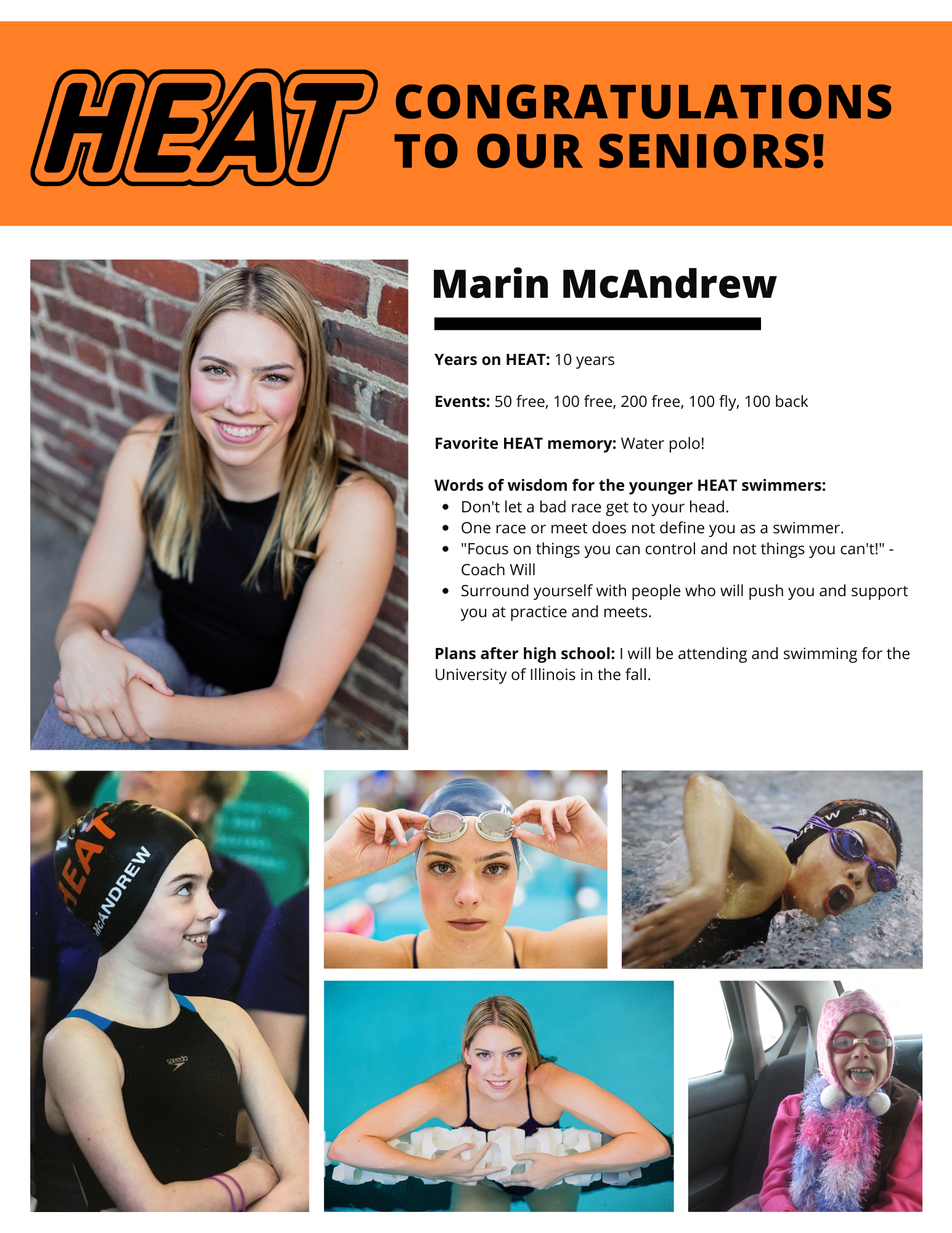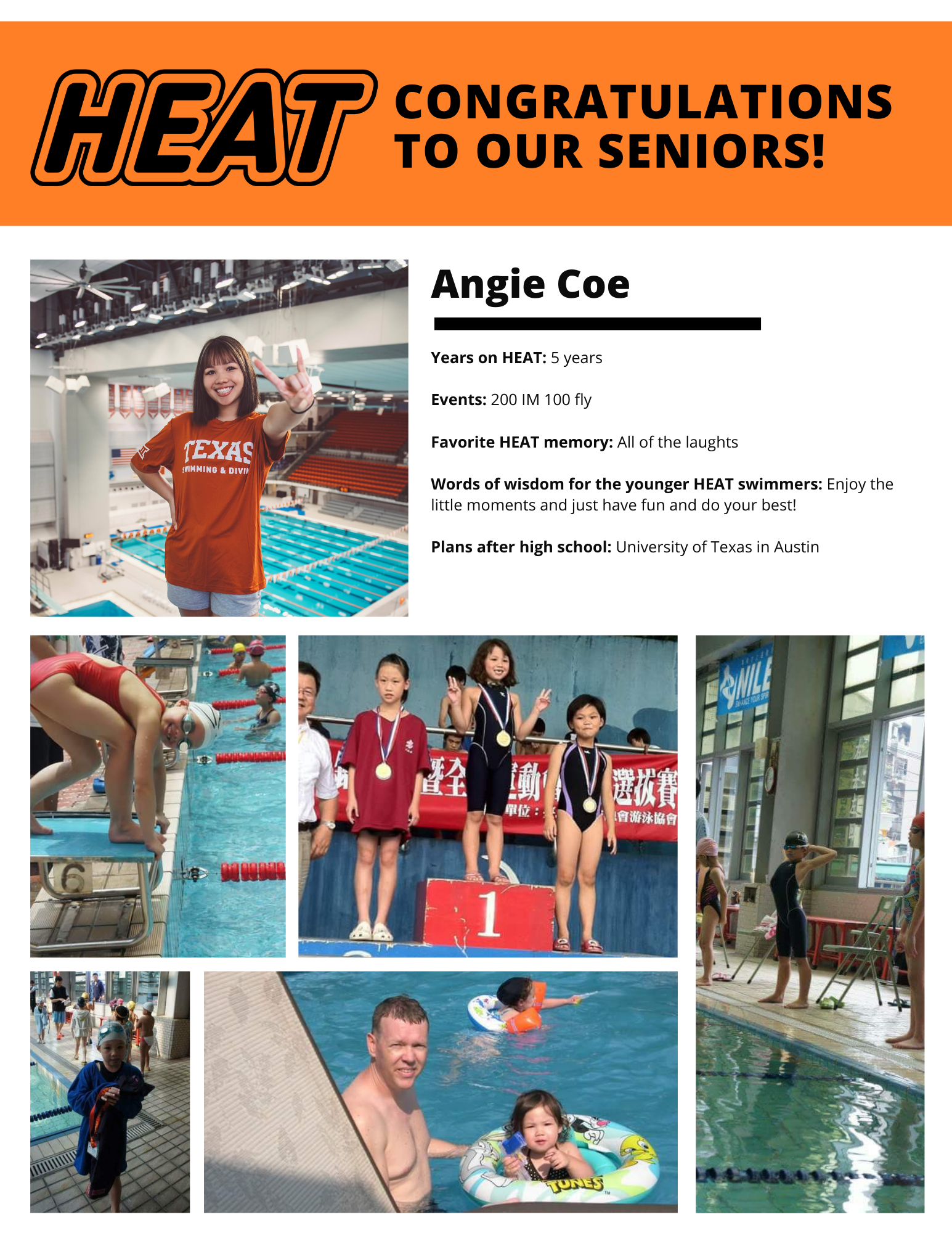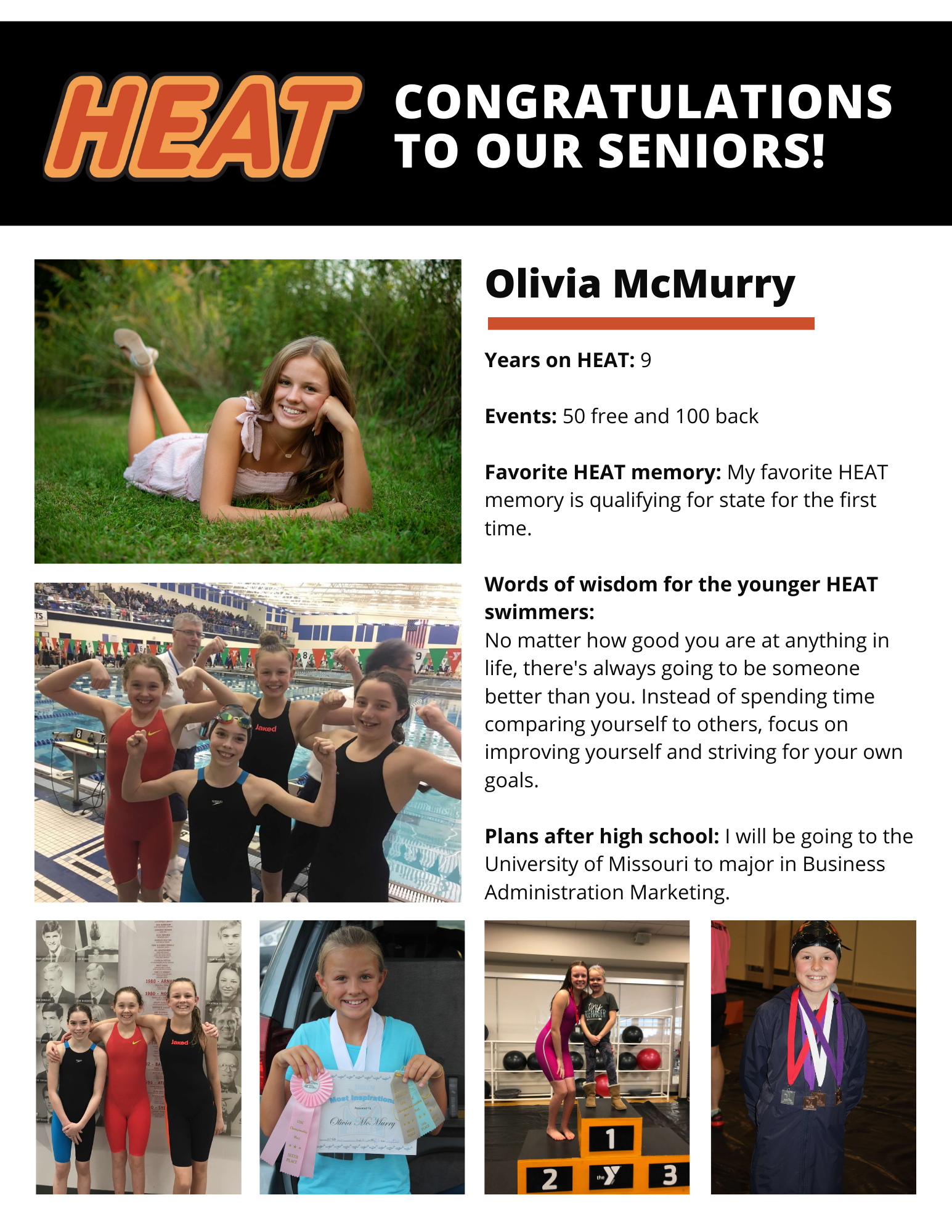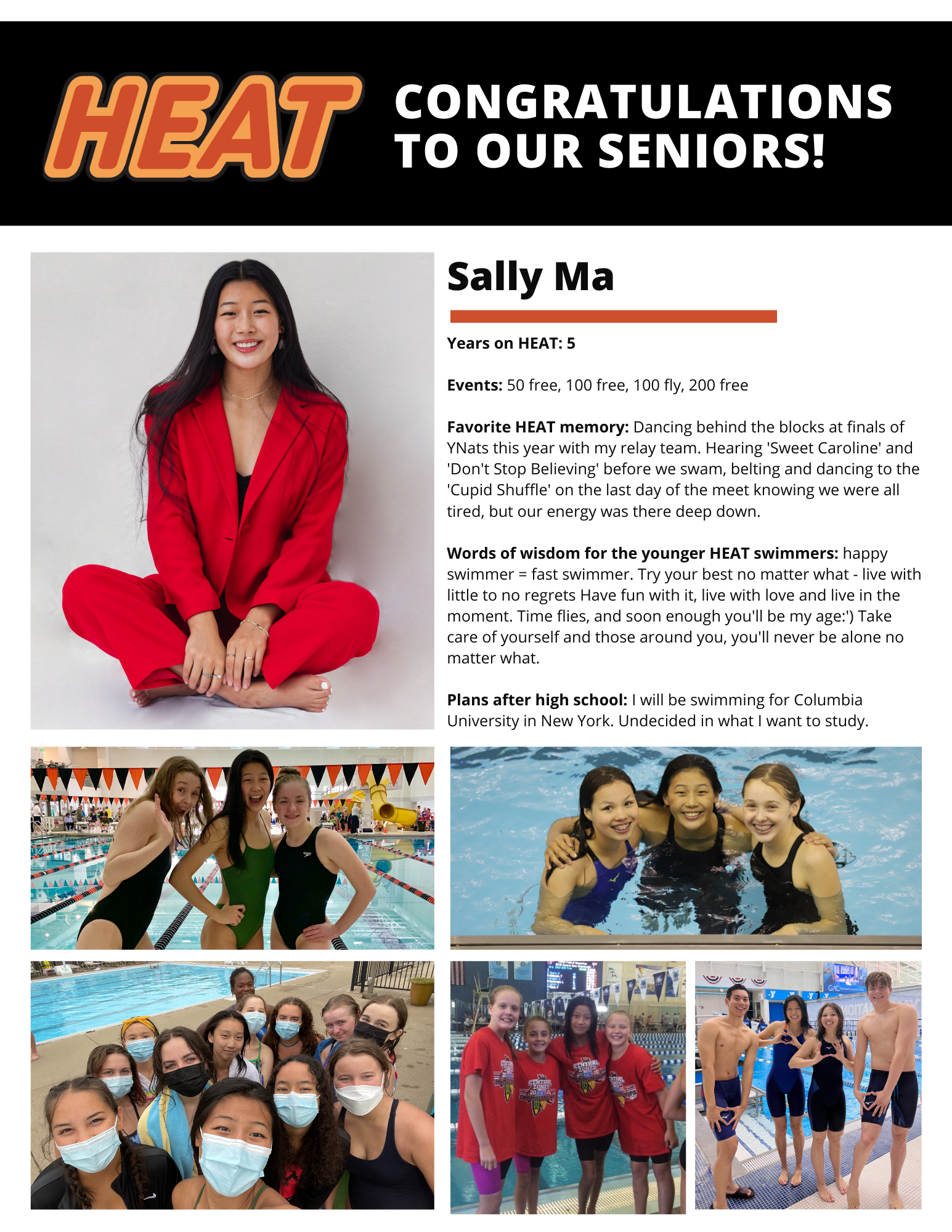 We're working on updating our Senior Class archive and want to make sure we have an accurate listing of all of HEAT's graduating seniors, as well as a list of all HEAT swimmers who went on to swim in college. Please take a moment to complete this form so that we can make sure that our website and archives are accurate. GO HEAT!