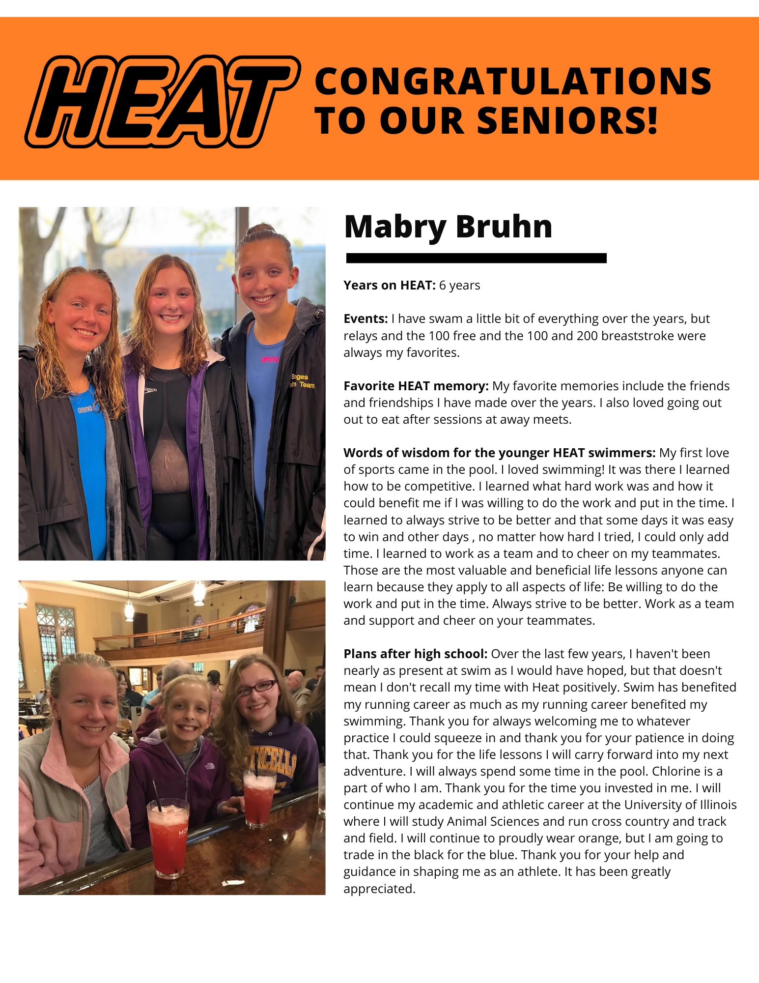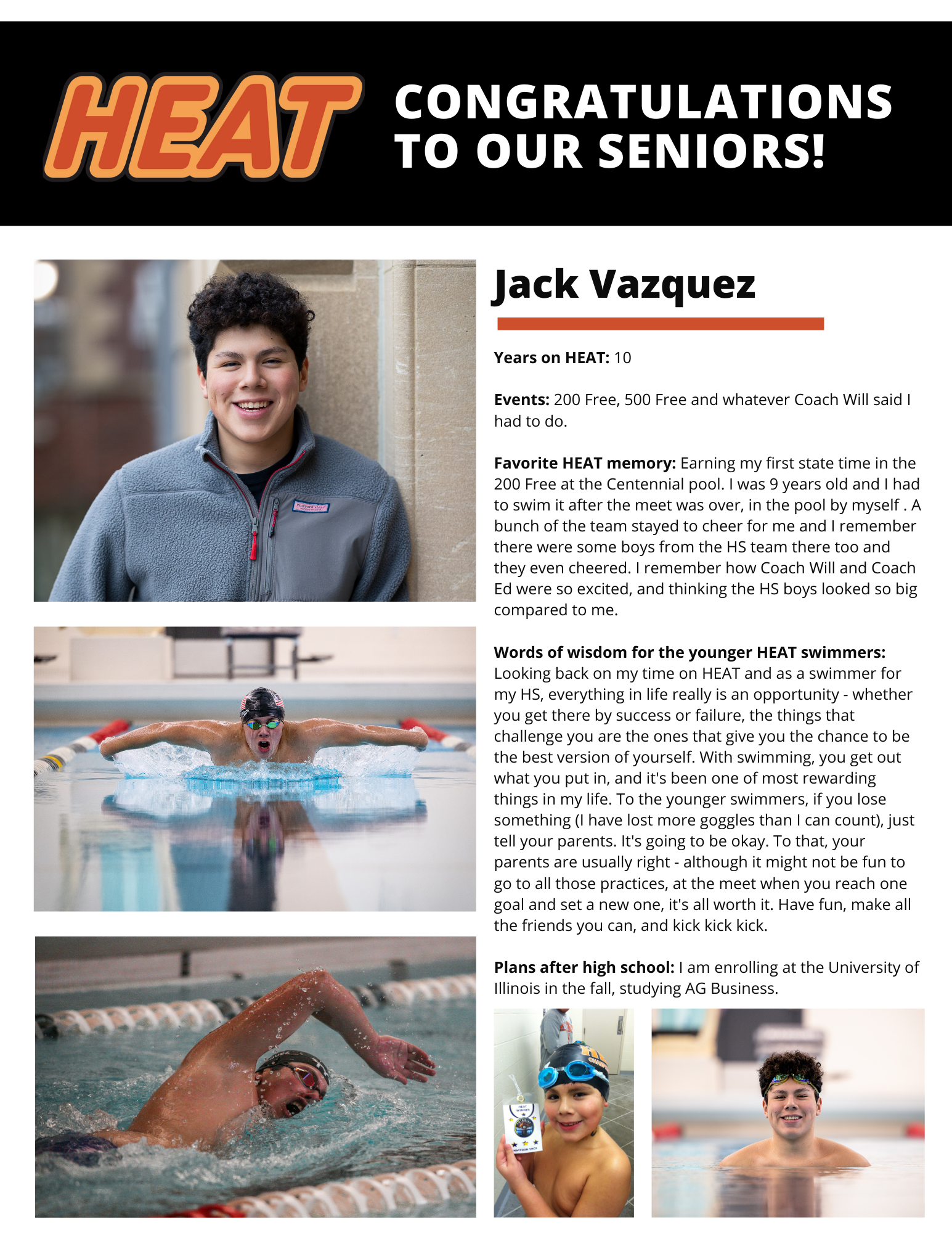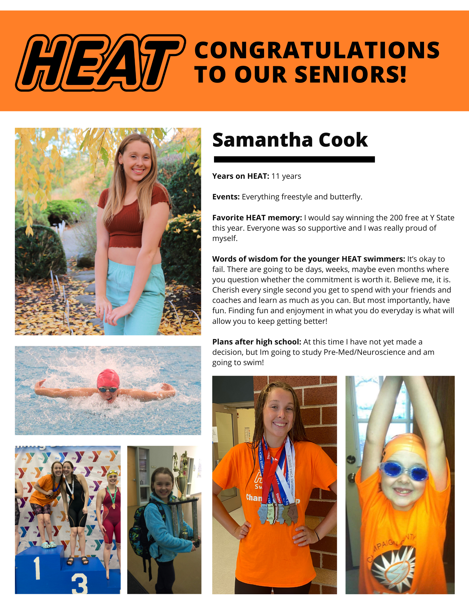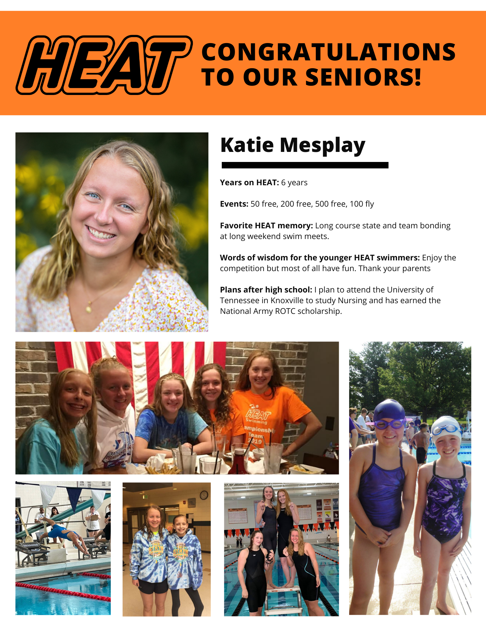 We're working on updating our Senior Class archive and want to make sure we have an accurate listing of all of HEAT's graduating seniors, as well as a list of all HEAT swimmers who went on to swim in college. Please take a moment to complete this form so that we can make sure that our website and archives are accurate. GO HEAT!