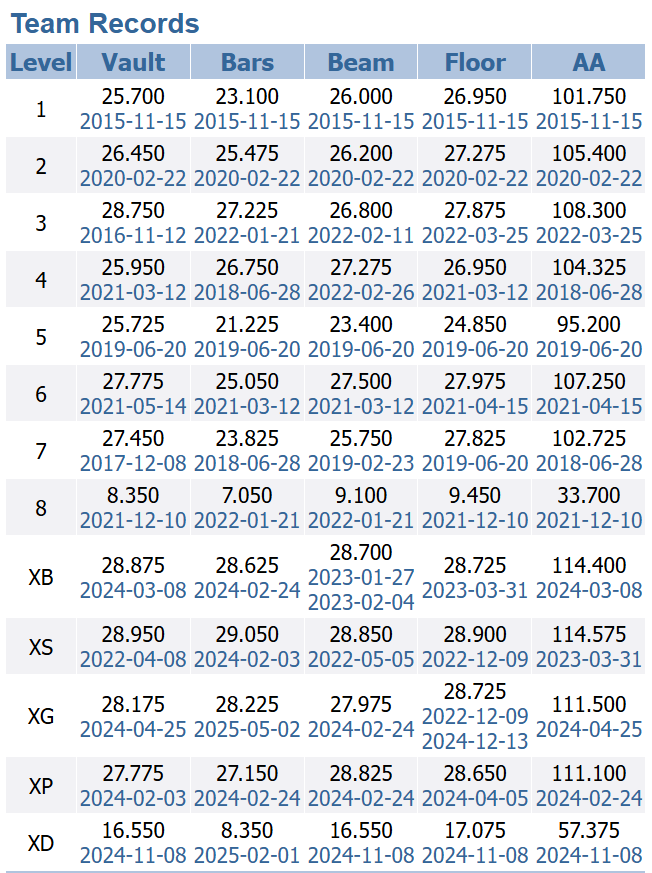 Please use the link below that will take you to MyMeetScores where you can view our team records!