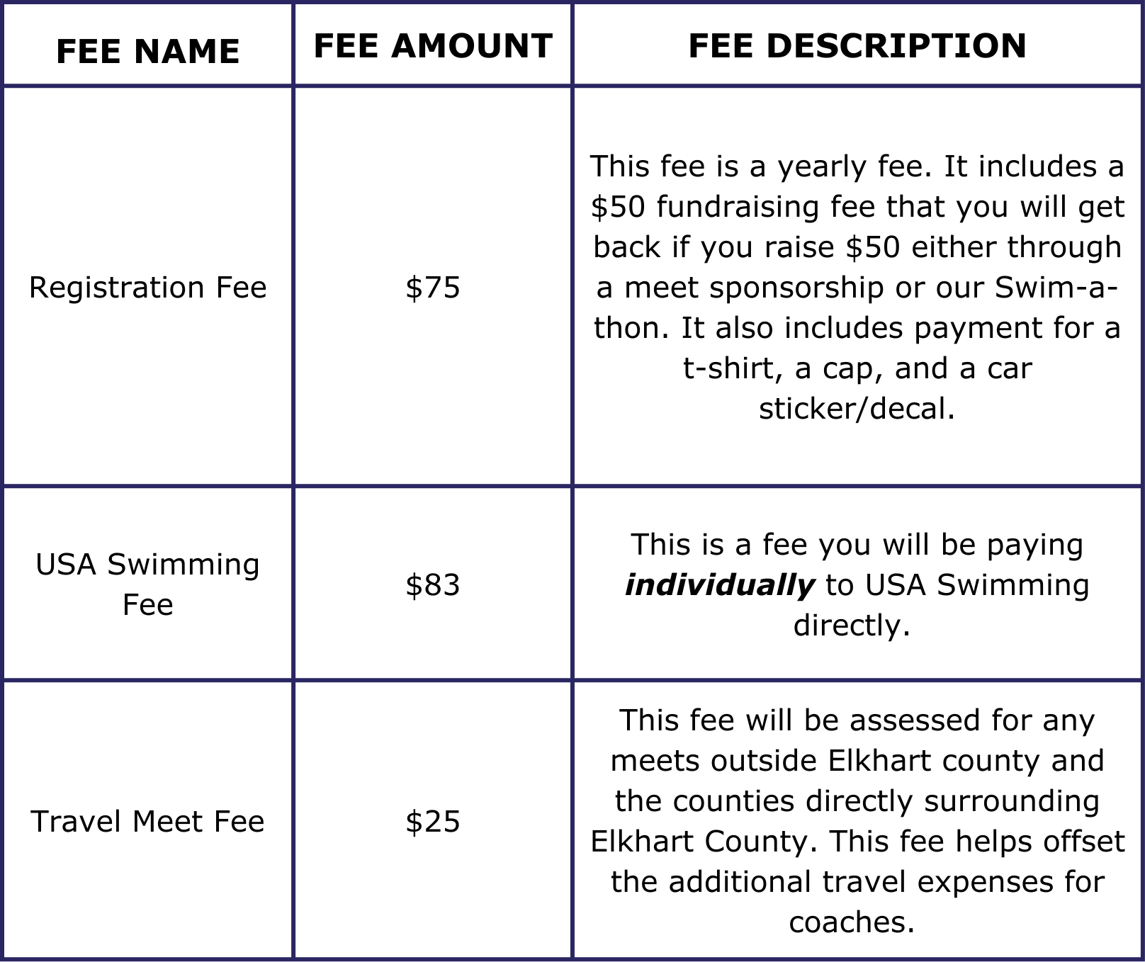 Your first monthly payment will be paid when you register your swimmer along with the registration fee.