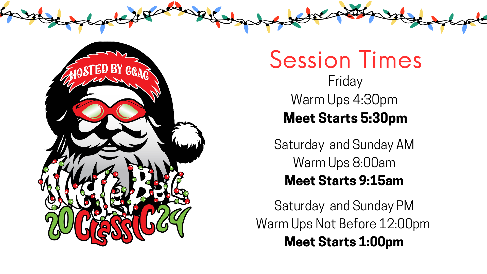 Schedule: Warm-up/Start times may be adjusted based on entries for the meet. CGAC will inform all entered teams if changes are made.