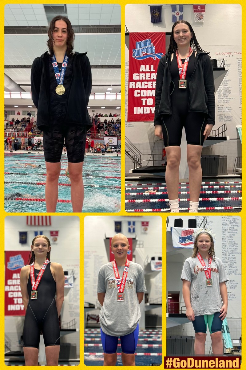 The purpose of the Duneland Age Group Swim Club is to provide any school age child an opportunity to involve themselves in a competitive swimming program. The Duneland Swim Club shall provide a quality competitive and instructional swim program for motivated young people of all ages and abilities. We believe that SWIMMING is the most outstanding activity a young person can be a part of. Through SWIMMING we will promote fitness and teach an athlete to strive for physical performances above and beyond what would be possible in other sports. The Duneland Swim Club has finished in the top 10 at the state championships for 32 seasons . We are rated in the top 20 teams for 34 consecutive seasons. We have won the last 40 Northwest Indiana Conferences (20 Winter Seasons and 20 Summer Season). DUNE has 1 Olympic Gold medalist, 1 National Champion, 7 Olympic qualifiers and numerous National and Junior National swimmers.