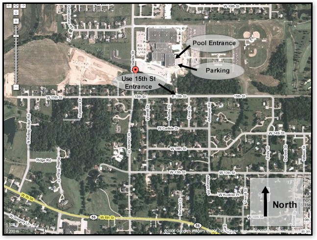 Pictured above is the shallow end (4 feet). During competitions, this part is reserved for warm up and warm down. In 2005, Jasper hosted one of the largest IHSAA sectionals in the state with 18 teams. Our deck can accommodate over 200 swimmers.