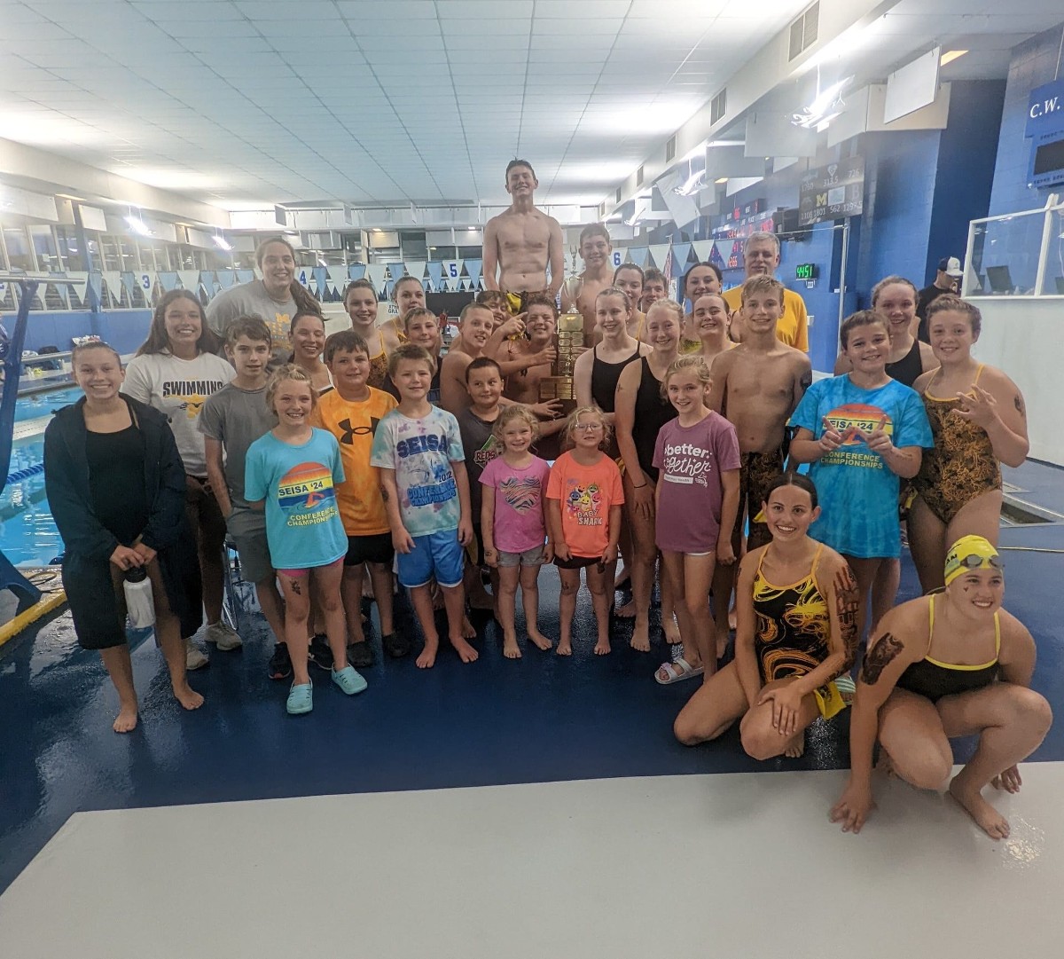 Our team is a year round competitive swim team offering high quality, professional coaching and technique instruction for all ages and abilities. The goal of our team is to provide every member an opportunity to improve swimming skills and achieve success at his or her level of ability, from novice to international competitor. We are a non profit club, run by its elected Board of Directors which meets each month. All members are welcome at each meeting and encouraged to be involved in team activities and fundraisers.
