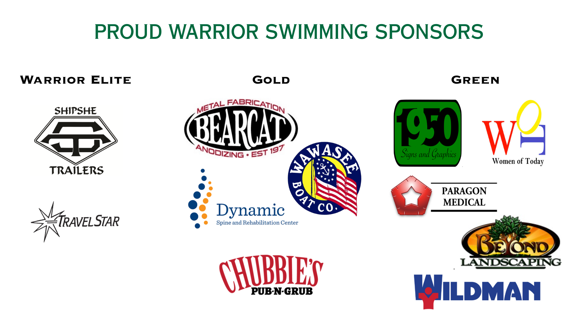 We are contacting you regarding an opportunity to be a sponsor of our swim program. Warrior Swimming is constantly wanting to improve our facilities and help our athletes reach their goals. These improvements include equipment, coaching compensation, uniforms and general maintenance. We also like to have the capability to offer scholarship opportunities from some families who need some assistance with registration.