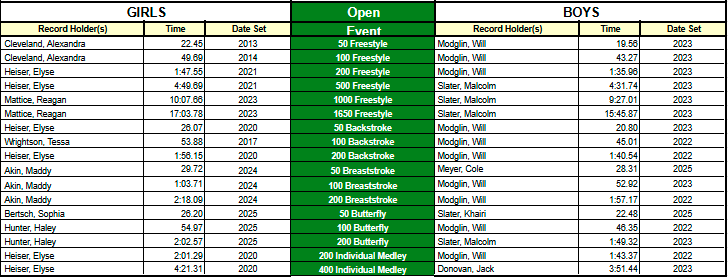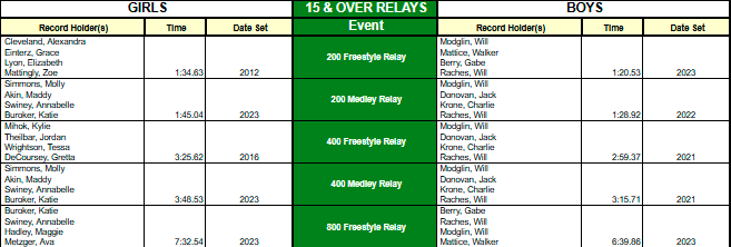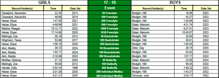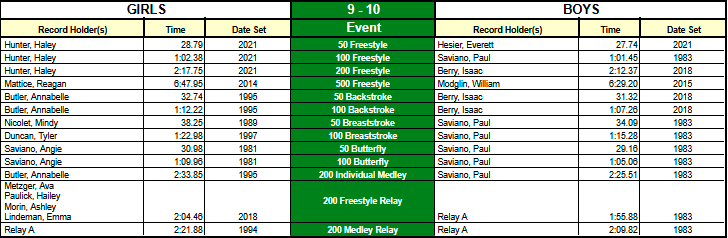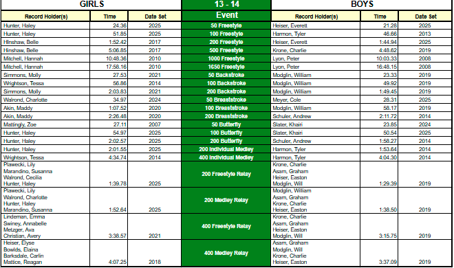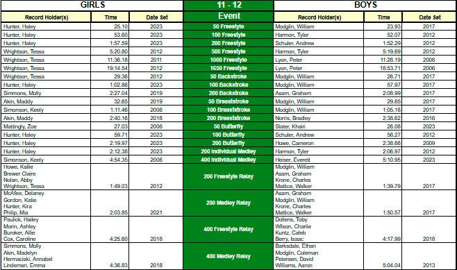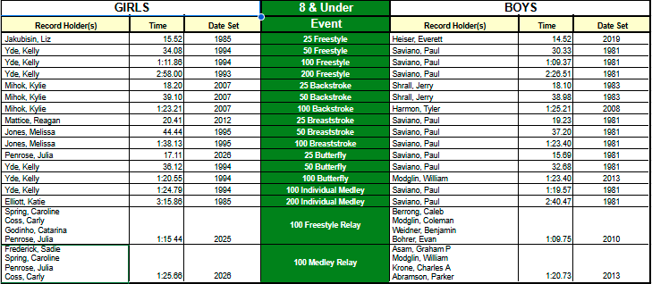 ZSC Club Records - Short Course (25y pool)