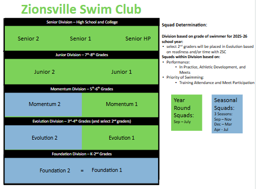 - These are guidelines in how we set up our Age Group and Senior swimming programs. All squad placements remain at the coaching staff’s discretion.