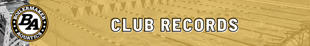 Boilermaker Aquatics records top times set by Age Group (14 and Under) and Senior (15-18) athletes who compete in meets while active members of BA roster groups. Athletes who have graduated high school and are training primarily with a college program are not eligible to set BA Club Records or swim on record-setting relays.