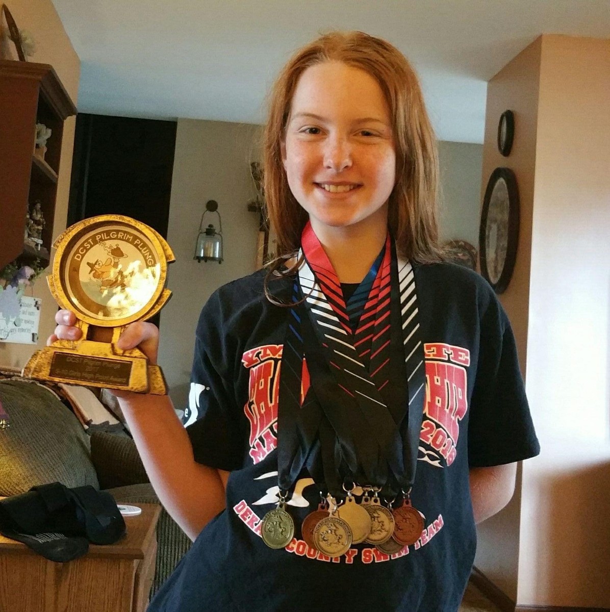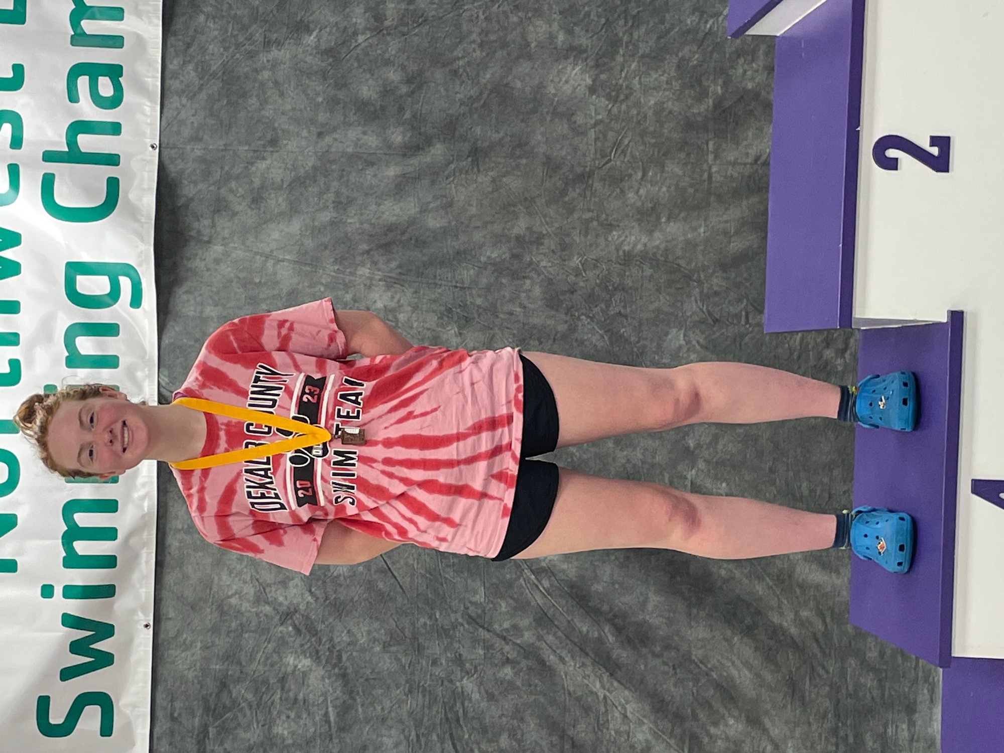 The memory that will always stick with her throughout her years on the team was winning the 50 yard Breaststroke at Districts in 2018, and being able to stand at the top of the podium to see her parents looking so excited and proud. Throughout her career she has had countless memories with her peers and coaches loves all of them!