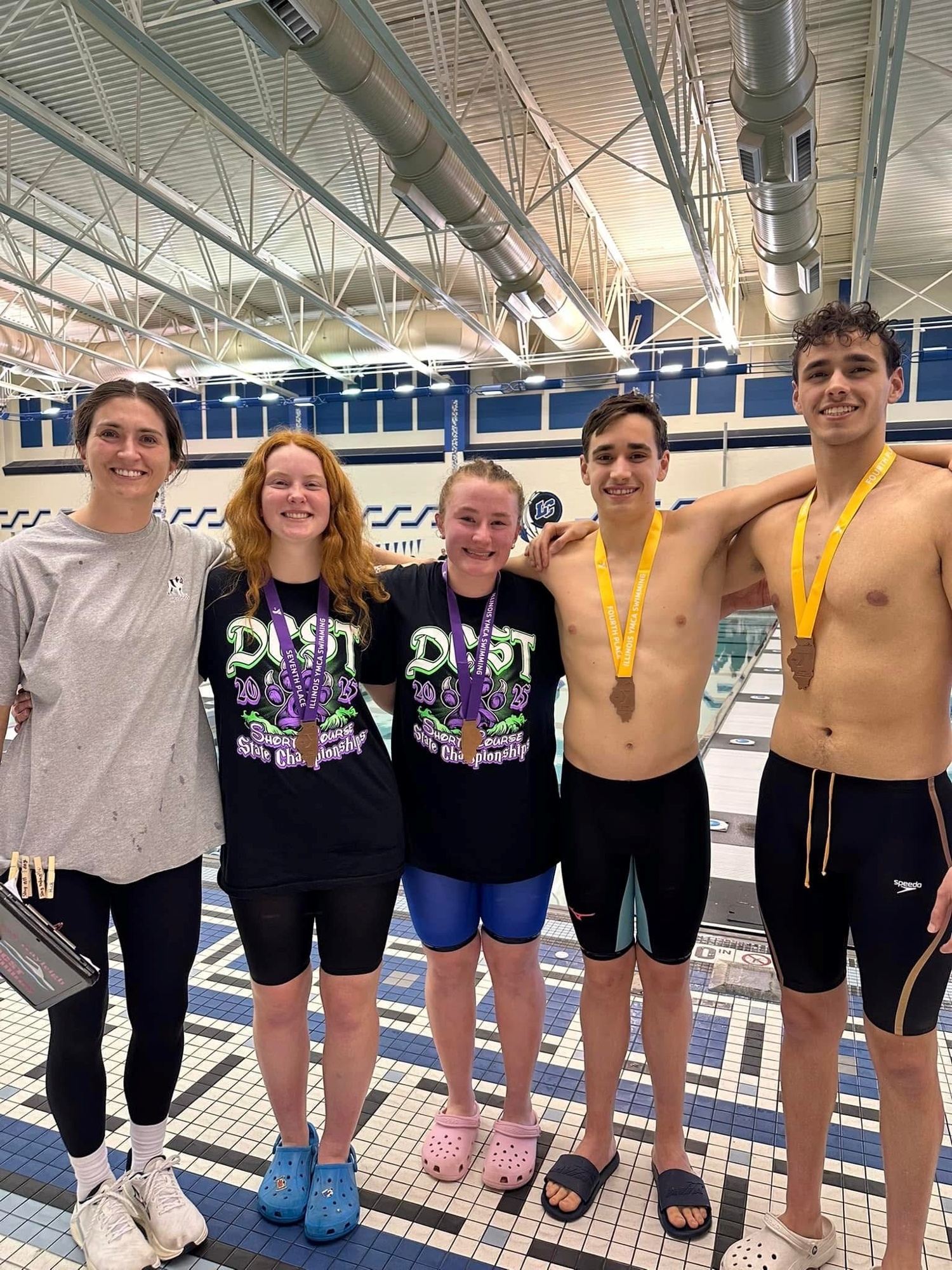 While qualifying for (and swimming in) the State meet is an accomplishment in itself, the swimmers pictured earned a spot on the podium by placing in FOURTH overall!!! 🏅