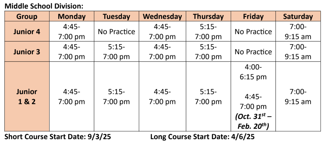 In our Middle School Division, we focus on developing the proper dedication and work ethic necessary to achieve goals, and challenging our swimmers to higher standards and expectations that will help them to succeed. During their time in the Middle School Division, swimmers can expect to be pushed to new levels while they are exposed to a heightened training environment.