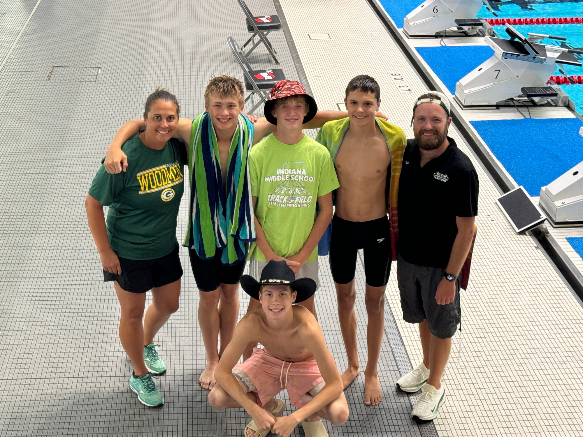 The Gators kicked off the 2024 summer long course championship season with a bang at the IN Swimming Swimfest State Championship meet at the IU Natatorium this past weekend. Against the very best in the state, our Gators showed their might with some amazing swims, lots of time drops, and 8 new team records! The team finished with 18 points which for a team of our size is excellent! Congratulations to Tyson, Griffin, Lucas, Nick and Elyza for representing our team so well! And thanks to coaches Brooke, Joe, and especially Lucas for their long hours at the Nat all weekend long! Highlights from the meet are below.