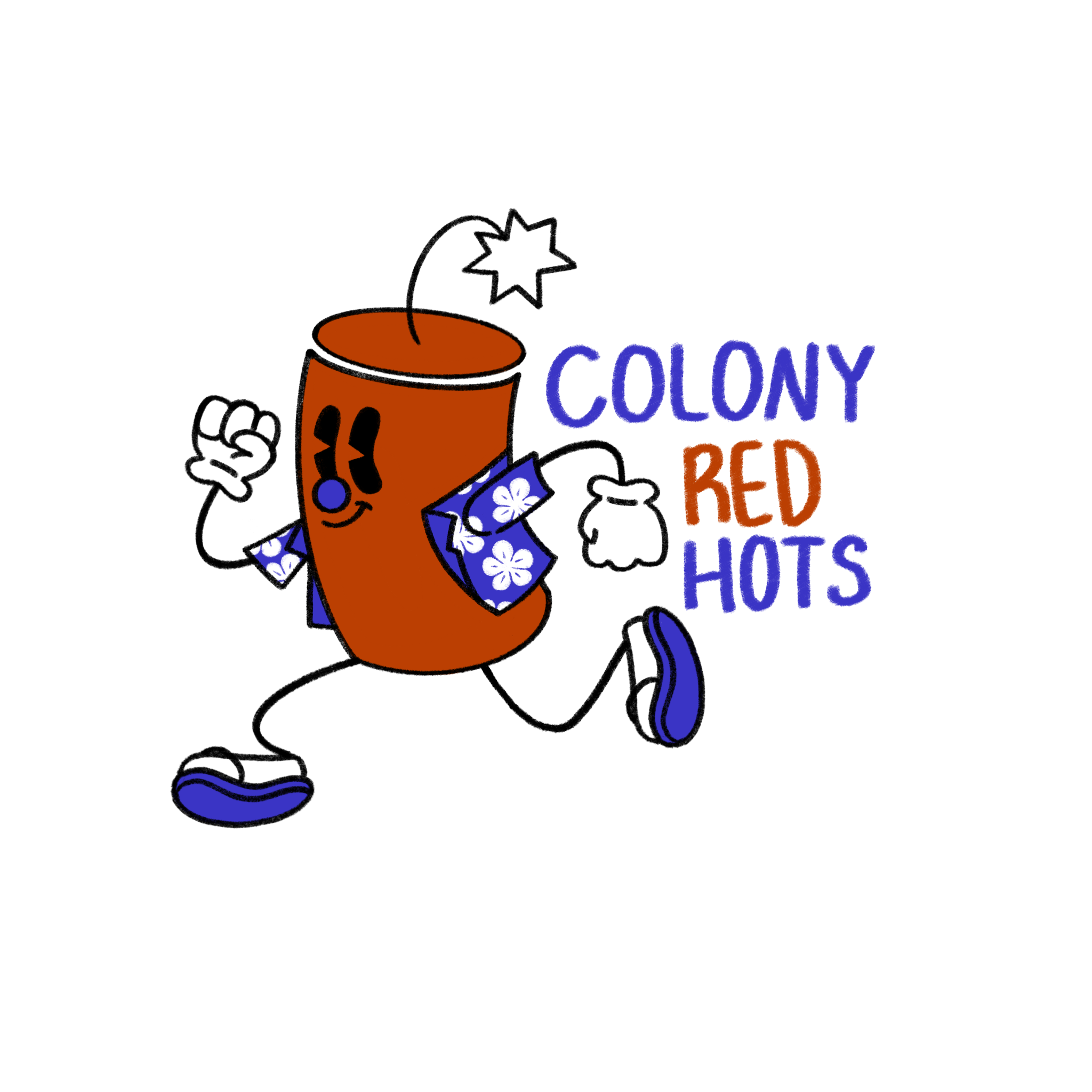 While designing this logo, I thought of ways to make it look similar to the old Colony Red Hots logo, but with a more modern twist. I had the idea of a simple cartoon of a figure swimming, and I integrated it with the red, white, and blue color scheme. The biggest challenge I faced while designing this logo was making it easily adaptable because I knew the logo would be used on websites and merchandise. I imagined a logo that could be used on many different things without having to have more than one version of it. As I was brainstorming, I knew I wanted something that would scream, “This is an energetic, and powerful swimming team,” while still being easy to see. And finally after a lot of trial and error with composition, font, and concepts for the figure, I came up with what is now the current logo for the Colony Red Hots. You can see more of my art at www.instagram.com/chickenfluffypants/