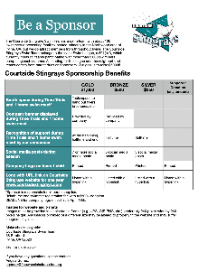 If YOU or your business are interested in sponsorship ads on our Courtside Stingrays swim team Web Page, or if you know of a business that might be interested in becoming a sponsor, download the sponsor benefits flyer HERE.