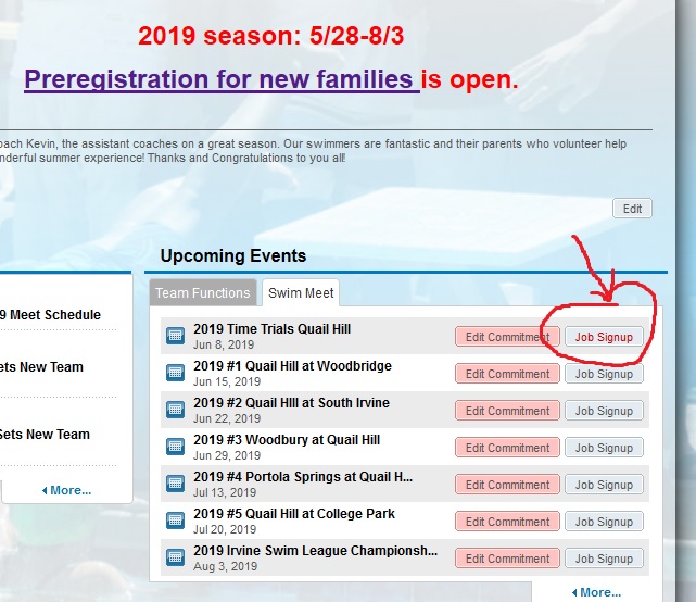 Parent volunteers are the backbone of our team. Unlike any other organized youth sport, the importance of parent volunteers is even more essential to a swim team. The success and culture of the team is directly correlated to the volunteer commitment and positive attitudes of our parents. For example, aside from pre-season and extra-curricular team activities, it takes approximately 100 parent volunteers from two swim teams to make a meet function well. Usually these swim meet shifts take only 2 – 2 ½ hours, and they are easy. It’s an opportunity to set an example for our kids, have fun, socialize with neighbors and make new friends!