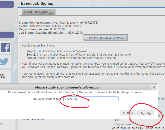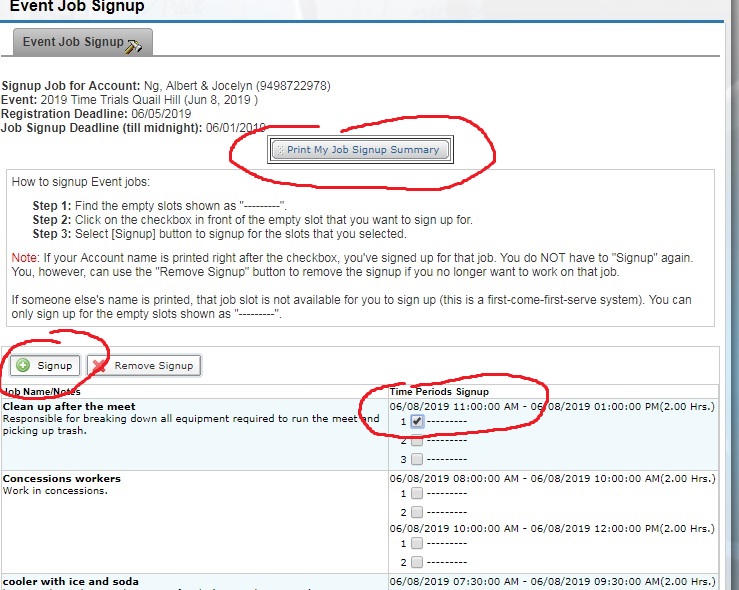You can click print for the summary of all the jobs you signed up for at the end of signing up.