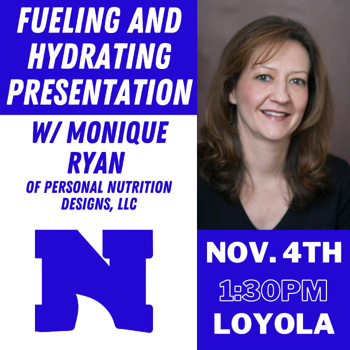 Join us Saturday November 4th at 1:30pm at Loyola Academy for a presentation on fueling and hydrating for swim training to optimize fuel, energy, and recovery, as well as nutrition and hydration strategies for swim meet day.