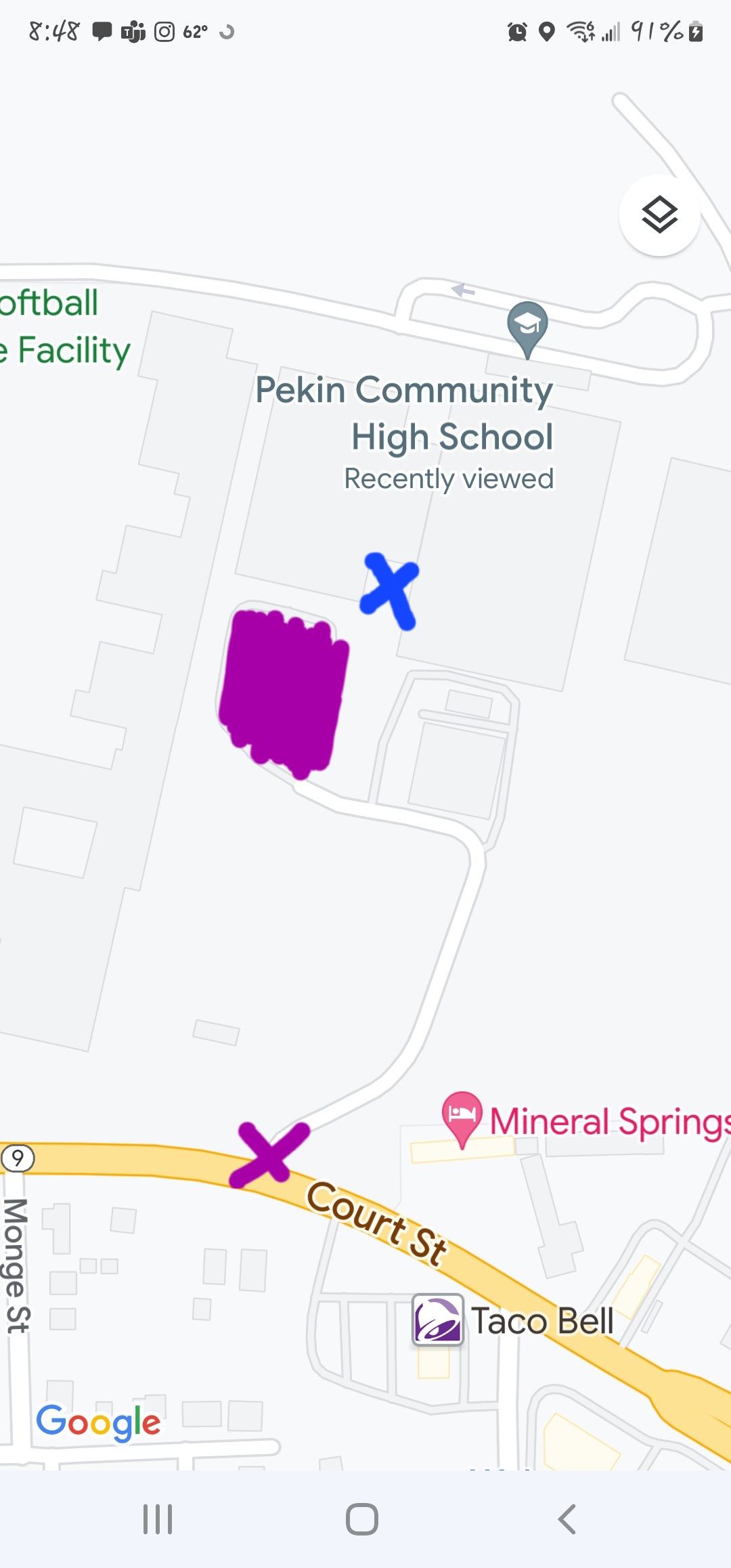 We will be using the back entrance of Pekin High School to enter and exit practices when the high school is hosting varsity football games.