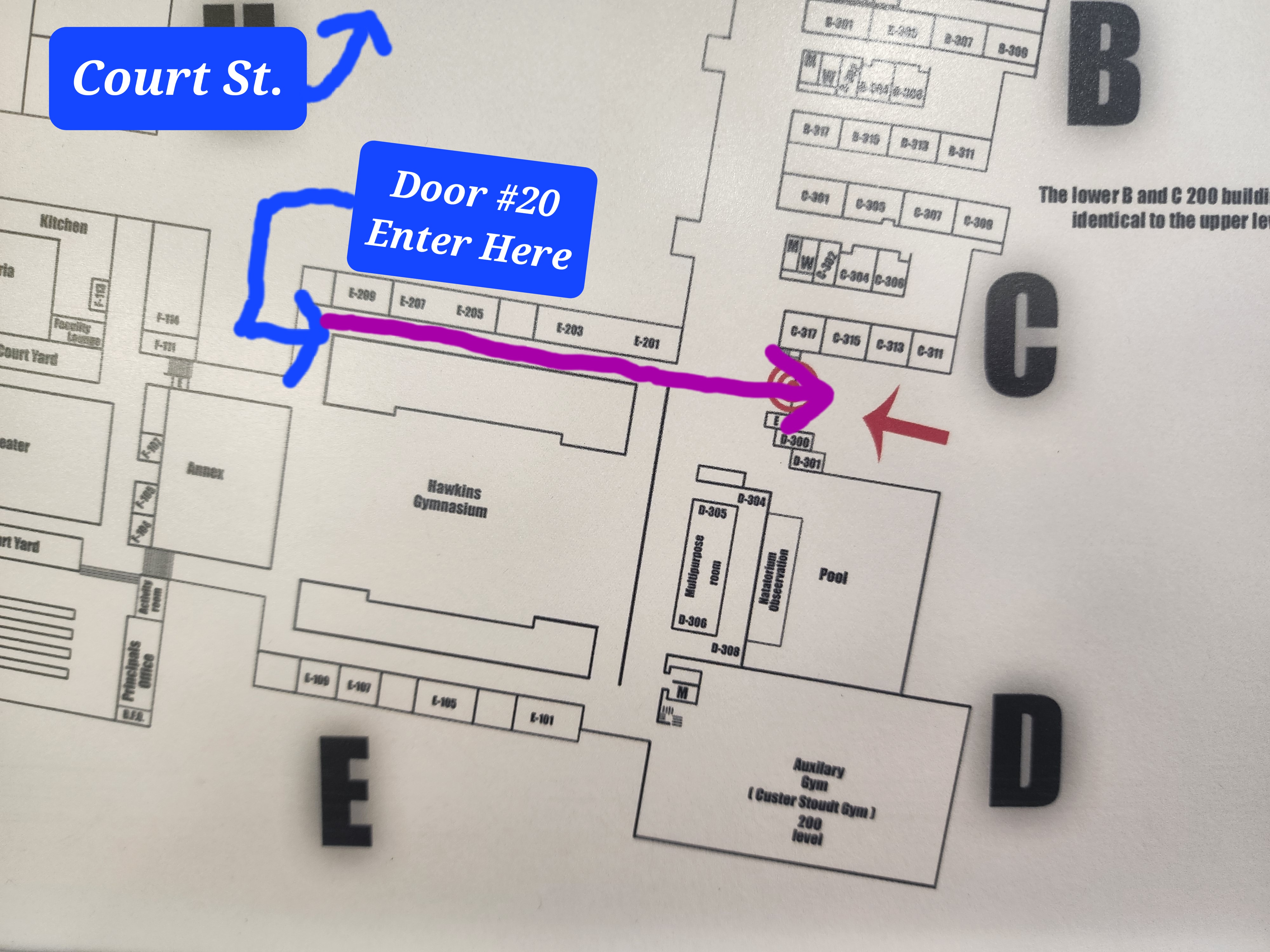The doors will be open 15 minutes before practice starts. Please be patient with the timing of the doors, this is a new process, and we will need to work out the timing. The high school will not permit us to keep the doors unlocked for the duration of practices. PAWW will enter and exit only from these doors, unless the high school is hosting a varsity football game, then we will use the back entrance (see below).