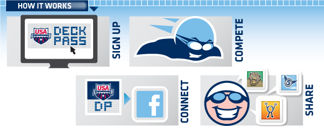 USA Swimming offers a great feature called Deck Pass, where swimmers and their parents can do many things like track times, set goals, see meet results, earn cool patches and more! If you don't already have Deck Pass, please consider this option. You can learn more on the program via the link below: