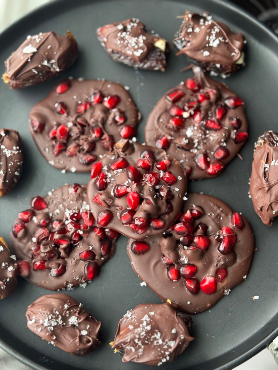 When the holidays roll around, I’m always looking for desserts that feel festive but don’t require a long ingredient list or hours in the kitchen. That’s where these chocolate pomegranate clusters come in. Pomegranates are in peak season during the fall and winter months, making them a perfect, seasonal addition to holiday treats. Paired with dark chocolate and finished with flaky salt, these clusters hit that sweet-tart balance while staying simple and elegant.