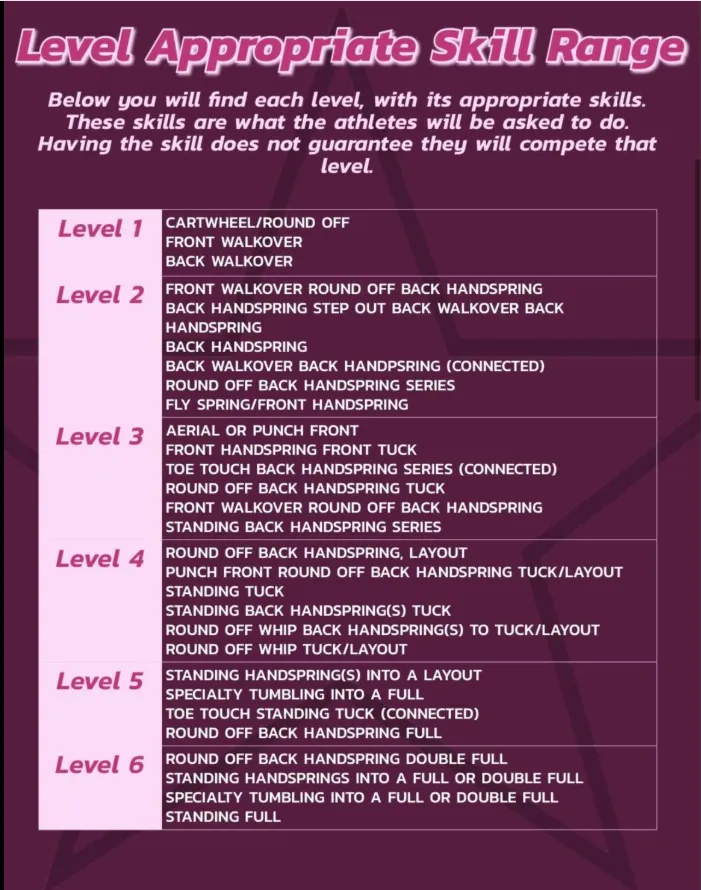 We are excited to offer an International Non-Tumble level 6 or 7 team to our 18 and up athletes. This team will have special pricing. Message us or come see us for information!