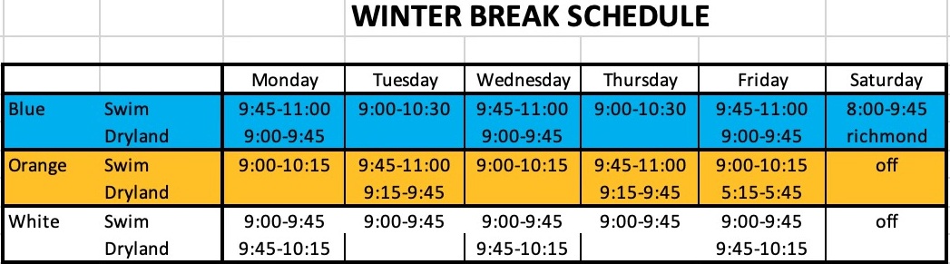 12/22-1/3 ALL WINTER BREAK PRACTICES AT TELFORD YMCA