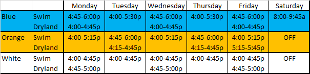 Blue Group is focused on performance, with a high attention to stroke mechanics, intensive dryland and athletic development, and meet performance. The goals of this group are a greater understanding of competitive swimming, increasing the speed and distances these athletes are able to race in all four strokes, and competing at the State-level and beyond. 9-month contract running Sept 1-May 31.