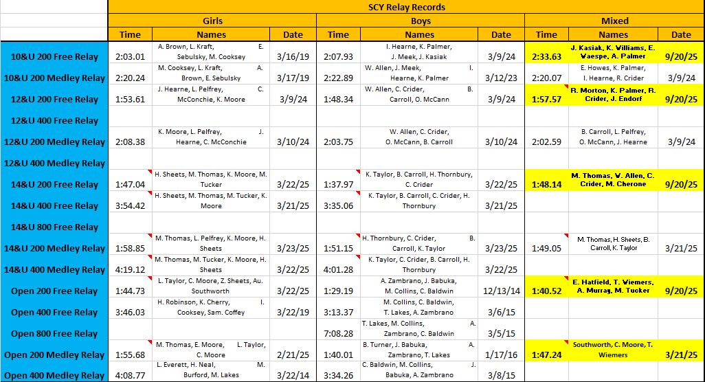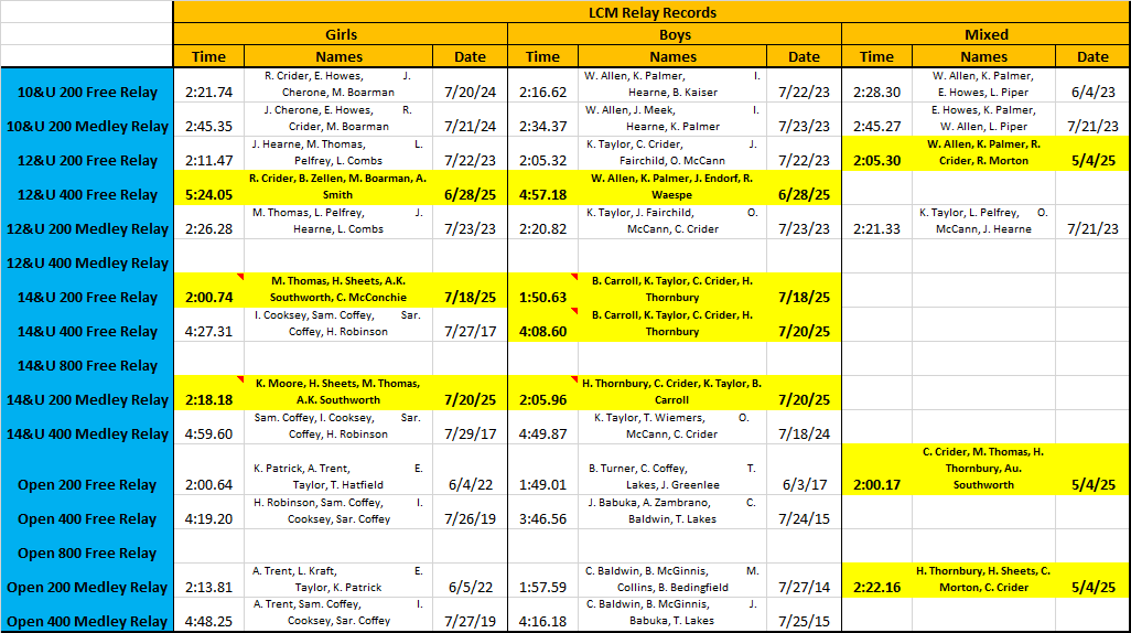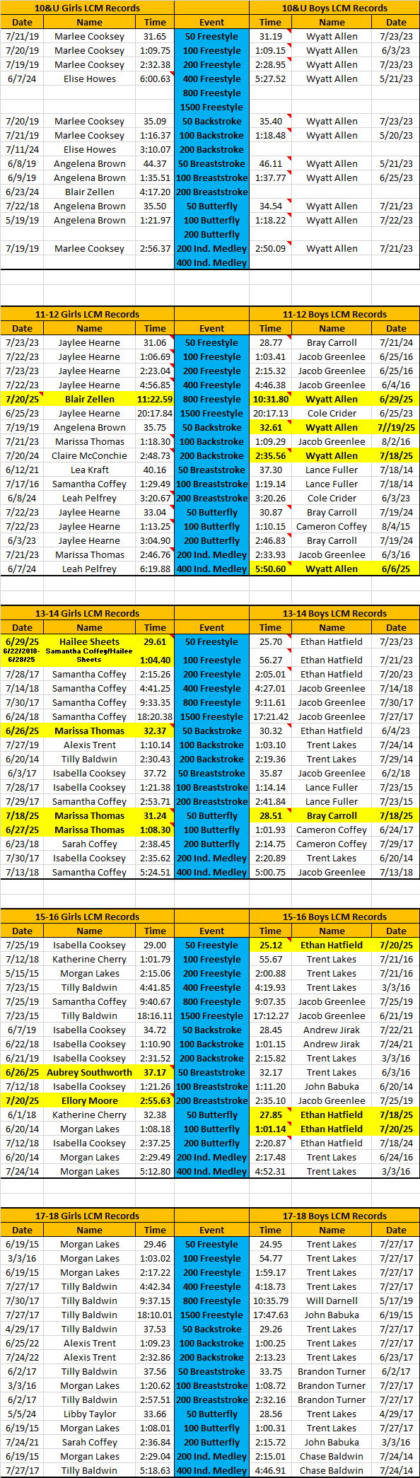 Long Course Team Records *indicates a record broken in the 2025 long course season