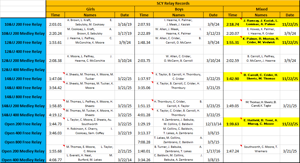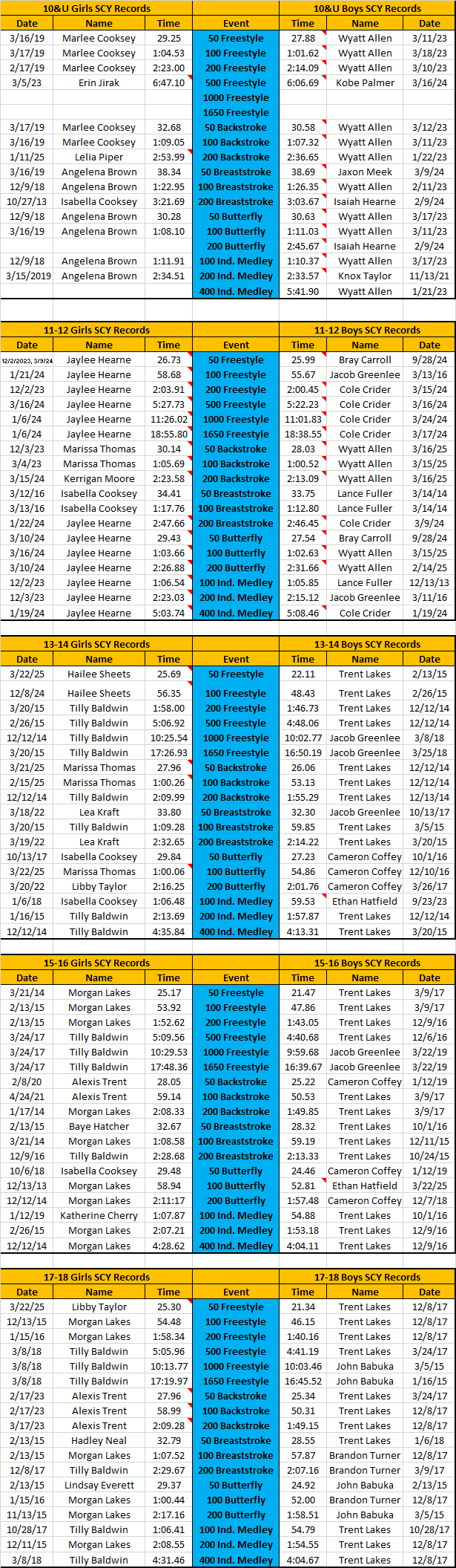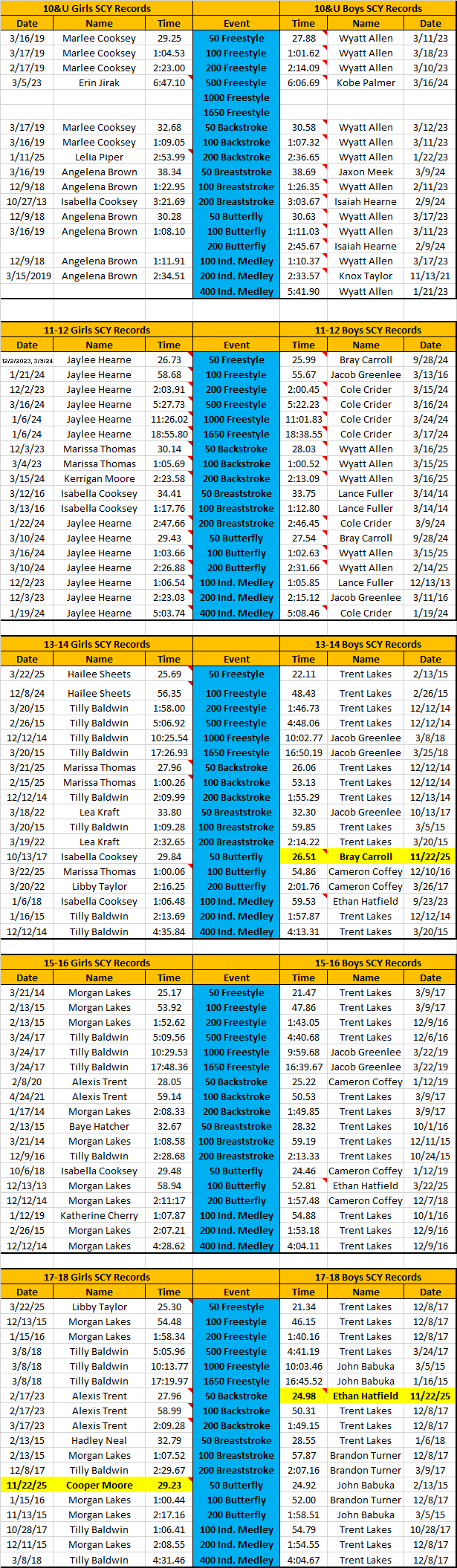 Short Course Team Records *indicates a record broken in '25-'26 short course season