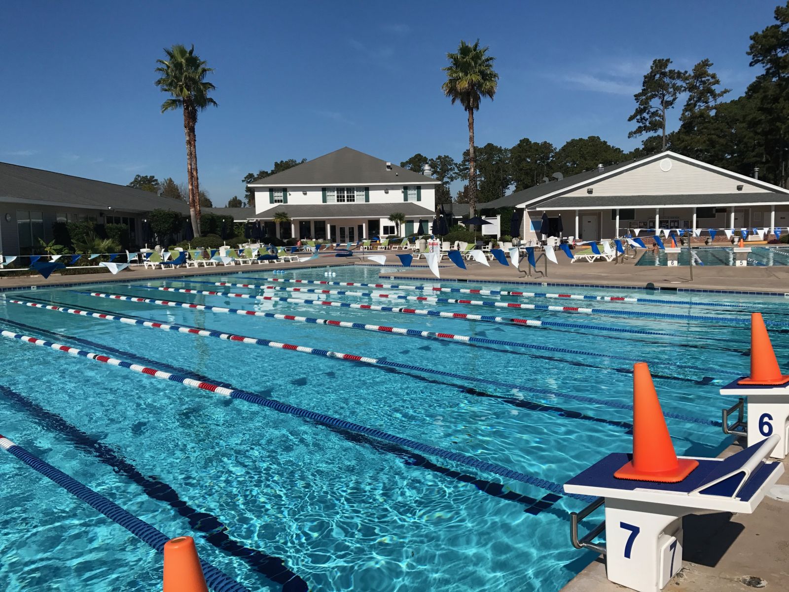 At Pelican Athletic Club, we offer practices in our newly resurfaced 6 lane and 8 lane pools. Both are open year round and feature dive blocks in every lane. Both pools are aerated during the Summer and heated during the winter for the comfort of our swimmers.