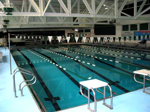A 25 meter six lane indoor pool with a moveable bulkhead, bleacher seating, and fully automatic timing system with a six-lane scoreboard, Newman's facility allows a more intimate training location.