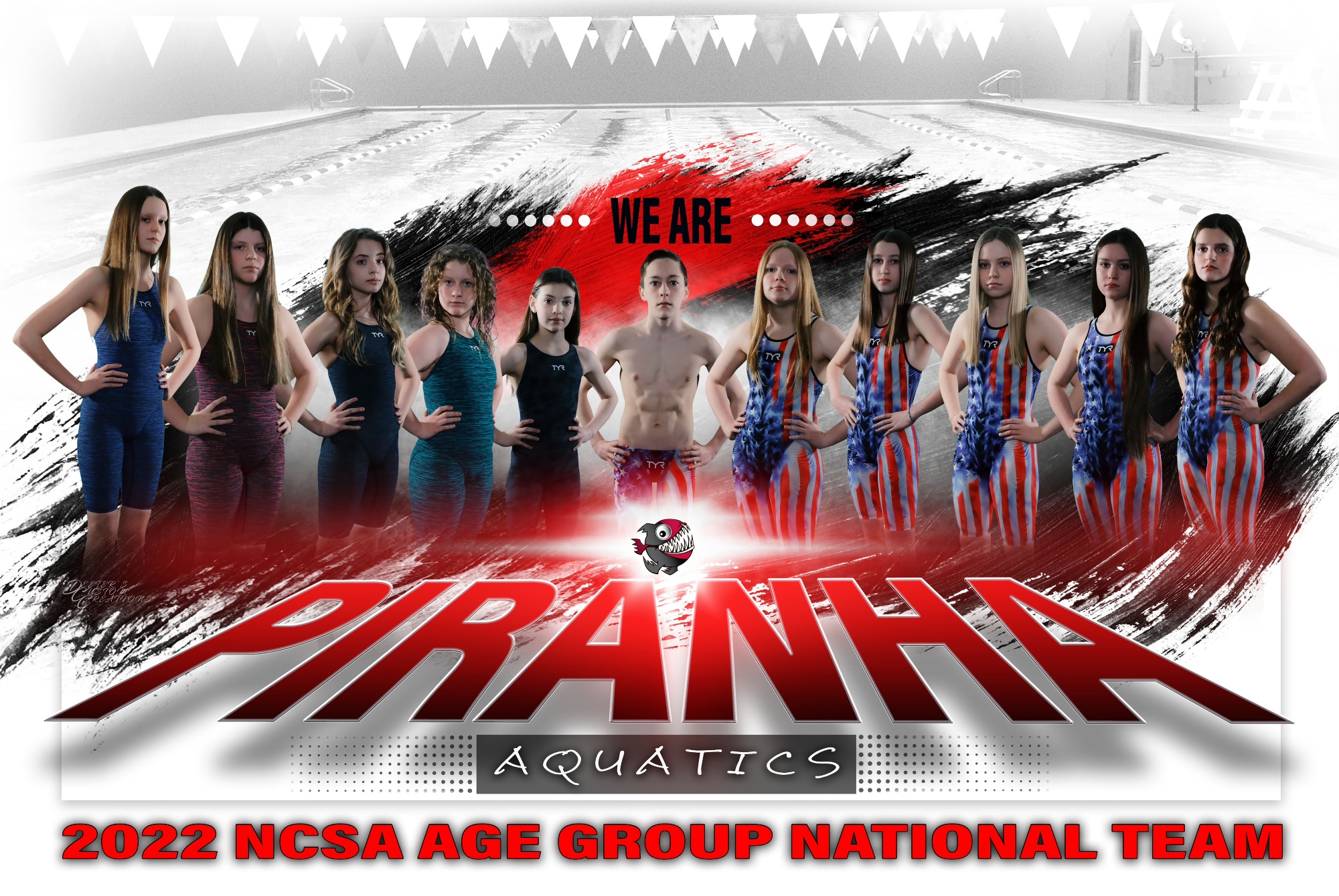 Congrats to Piranha's 2022 National Team of Tres Hively, Kalli Pellice, Matae Ronyak, Leighton Birmingham, Kenzi Ronyak, Ryan Folger, Elena Mackall, Tori Buckingham, Paige McCombs, Ava Cheeks, and Ashlynn Reynolds! These 11 athletes finished with 4 team records, 13 LTBs, 7 new NAG time standards, 2 top 24 finishers, and a lifetime of memories.