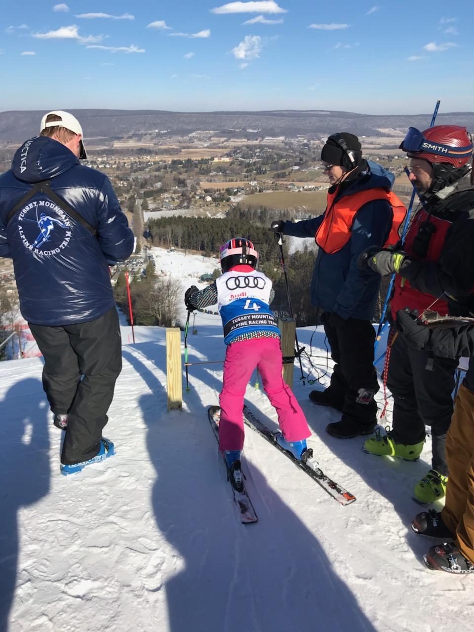 The headwall at Tussey can be intimidating. While standing at the top, you are watching racers try their best. Some racers ended up slipping and falling on the icy surface. That adds to the nerves right before starting your race. Everyone was excited to race well and try to make State. Once you start your run on the headwall, it isn't as intimidating as it first looked. We each ran our two runs and tried our hardest. We had decent weather. Day one was sunny and day two was partly cloudy. We were all glad there was no rain and the temperatures stayed cool.