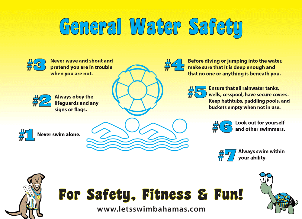 Let’s Swim Bahamas recognizes the importance of teaching children water safety rules as well as giving swimming lessons. Making safe decisions while swimming in a pool or the sea as well as when boating can save lives.