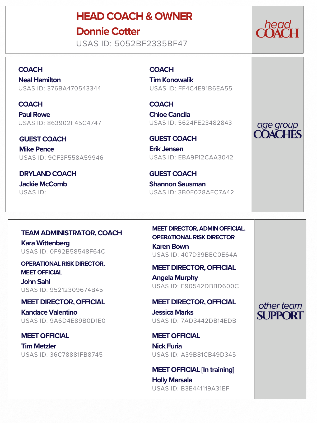 The ECCC coaching and support staff team is primarily driven by a deep and abiding passion for the sport, which serves as the foundational, motivating force behind their dedicated work with, and for our athletes.
