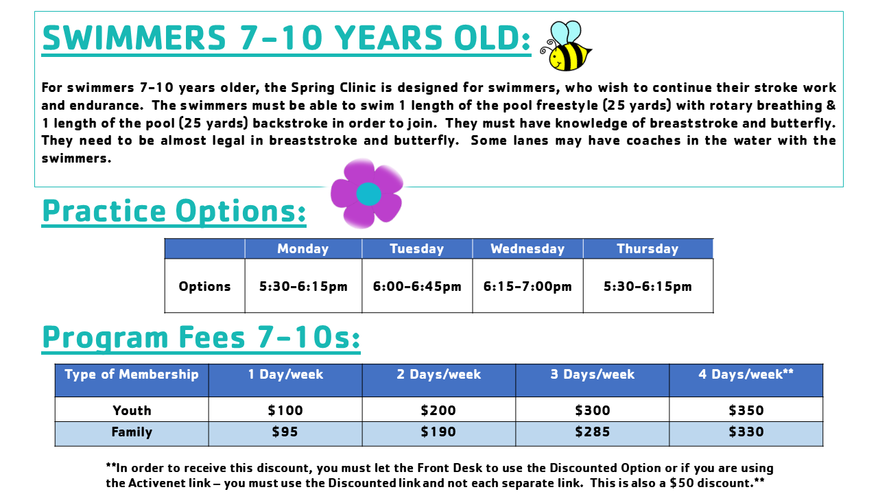 The Spring Clinic begins on April 6th runs through May 23rd.