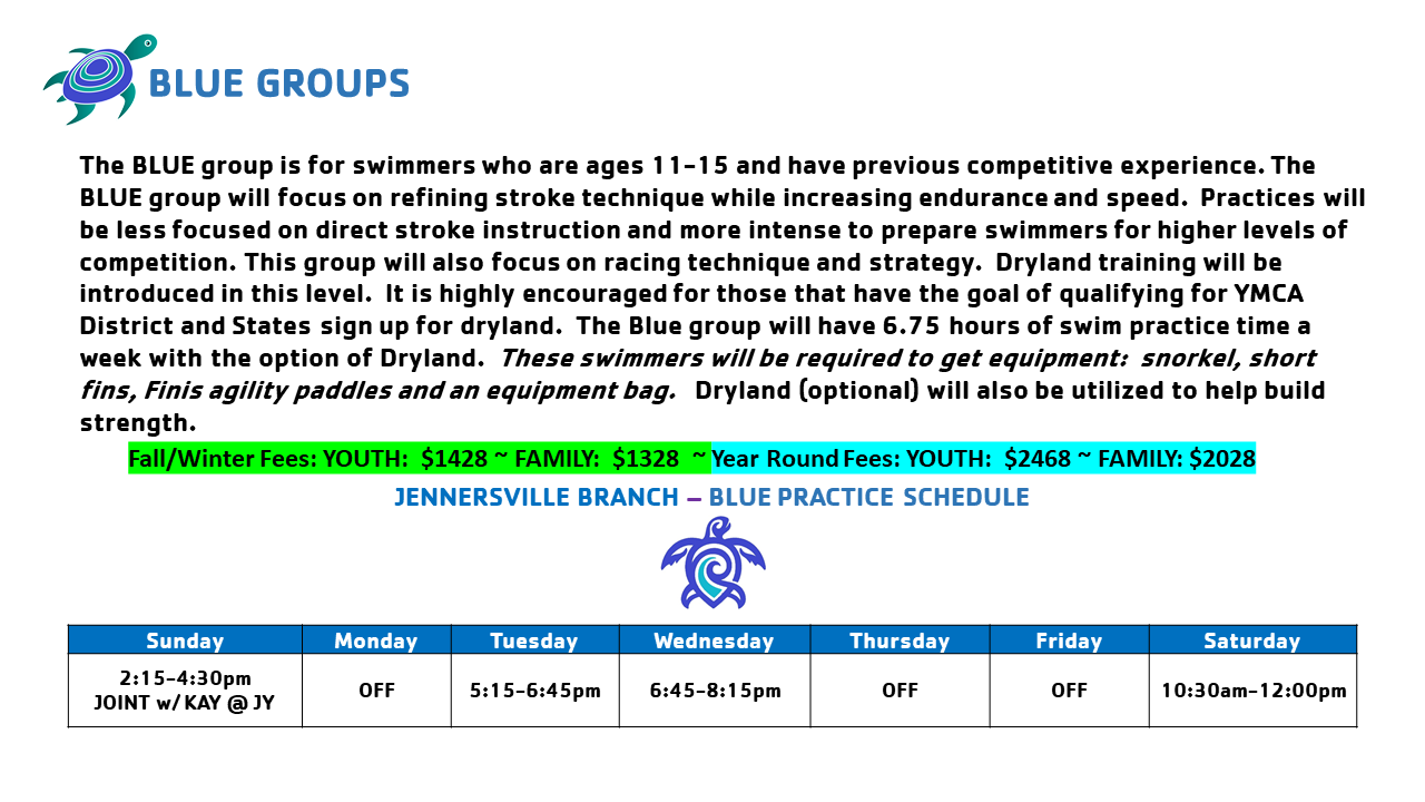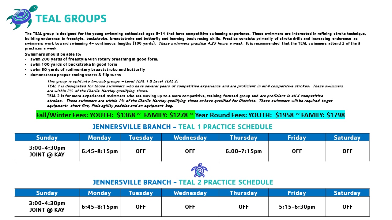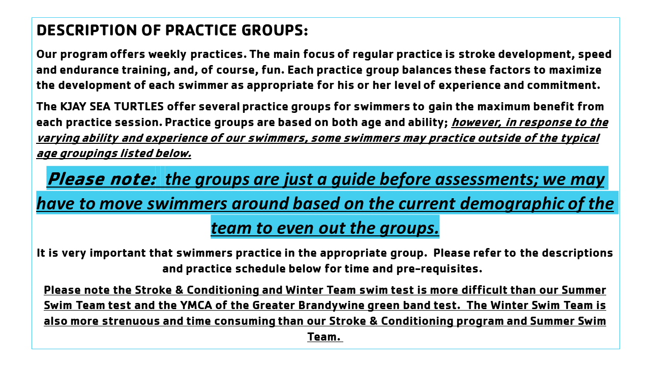 Please note: the groups are just a guide prior to assessments, we may have to move swimmers around based on the current demographic of the team.