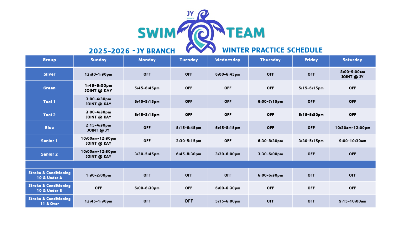 - Swimmers that are more than 10 minutes late (in the water) will be turned away from practice.