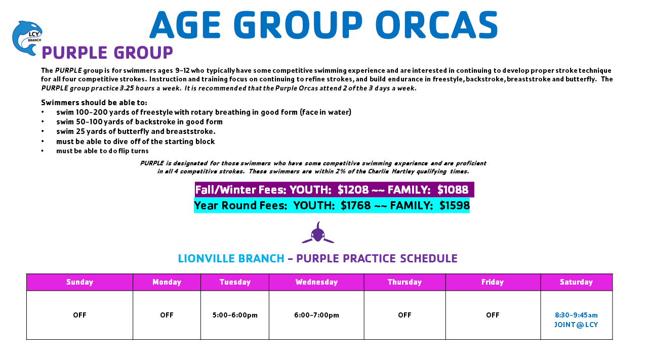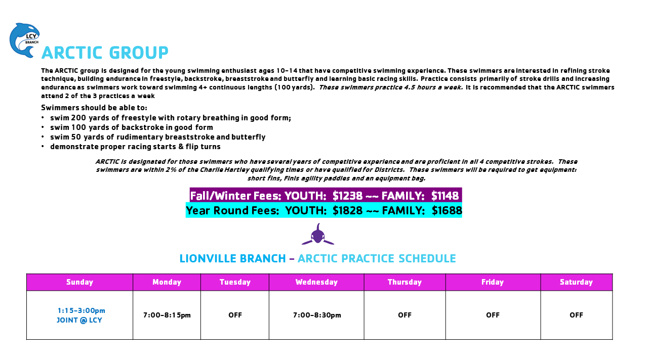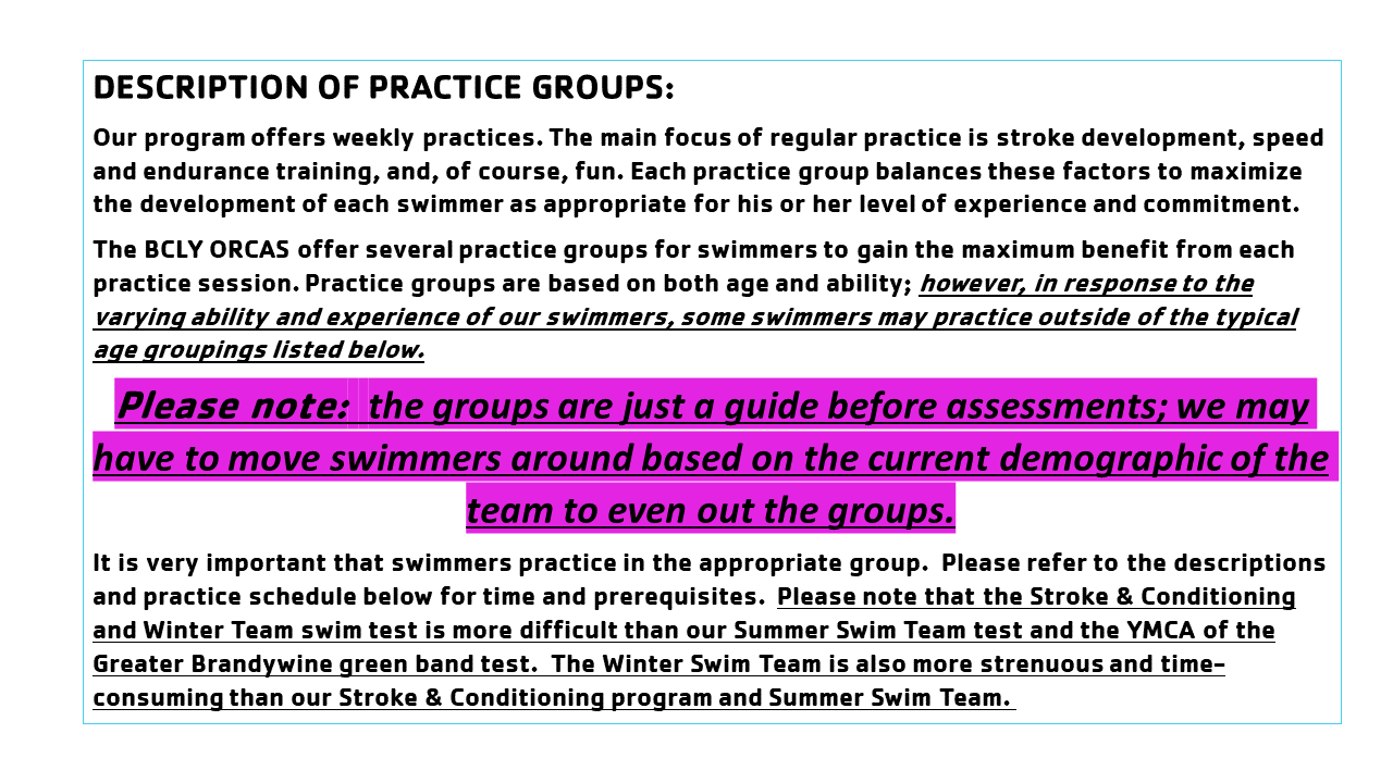 Please note: the groups are just a guide prior to assessments, we may have to move swimmers around based on the current demographic of the team.