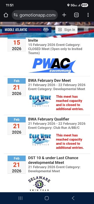 Unfortunately, the BWA meet has closed already. This meet really didn't work for most of our families wuth older swimmers anyway.
