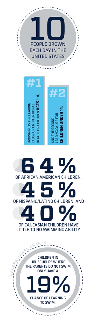 - Research shows 64% of African-American, 45% of Hispanic/Latino, and 40% of Caucasian children have little to no swimming ability.