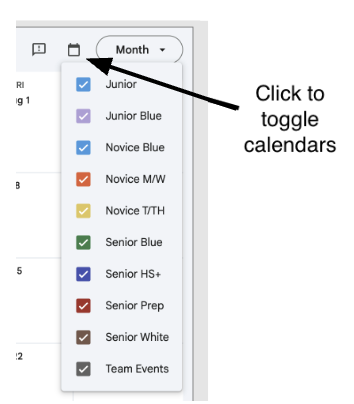 The practice calendars for all training groups are included in the live Google Calendar shown below. Scroll down the page for links to subscribe to the training group calendars and view other pertinent practice information. (Click here for Mobile Friendly version)