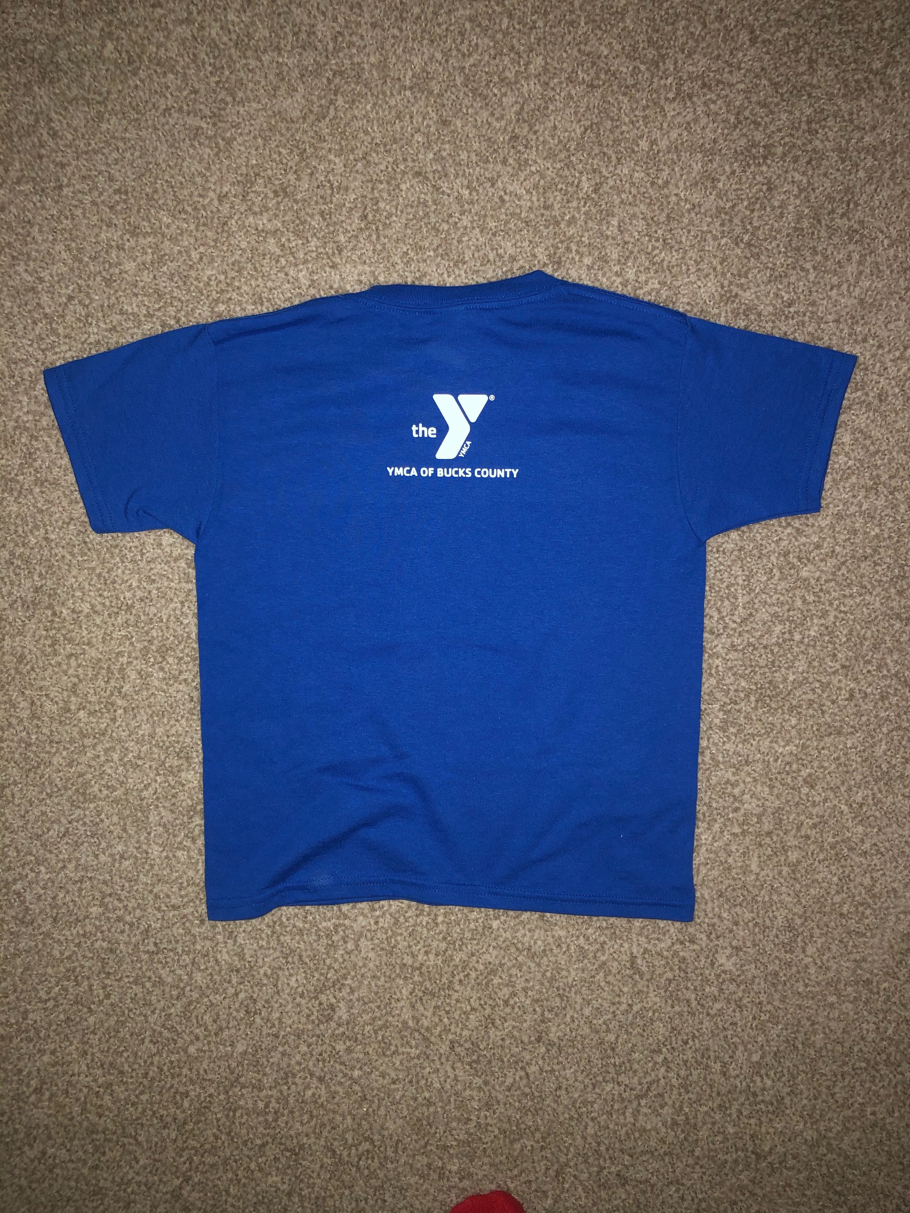 Blue short sleeved shirt with white lettering. Cost: $12 each.