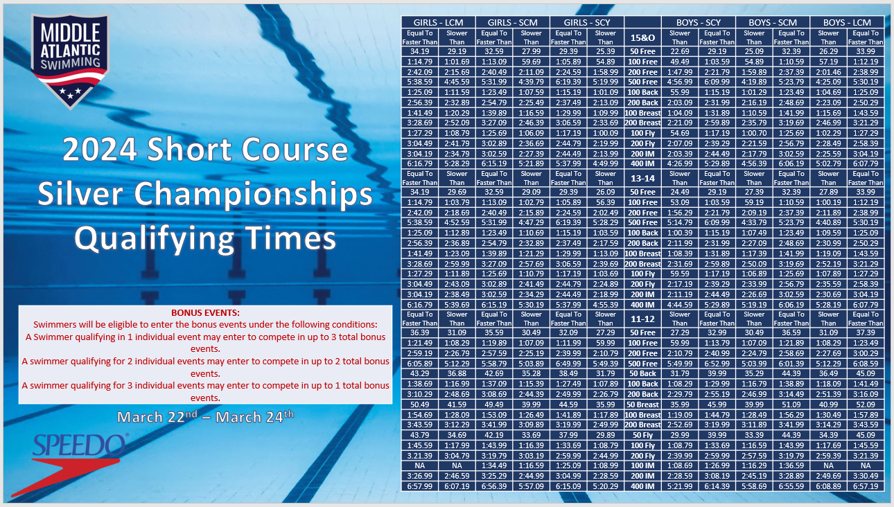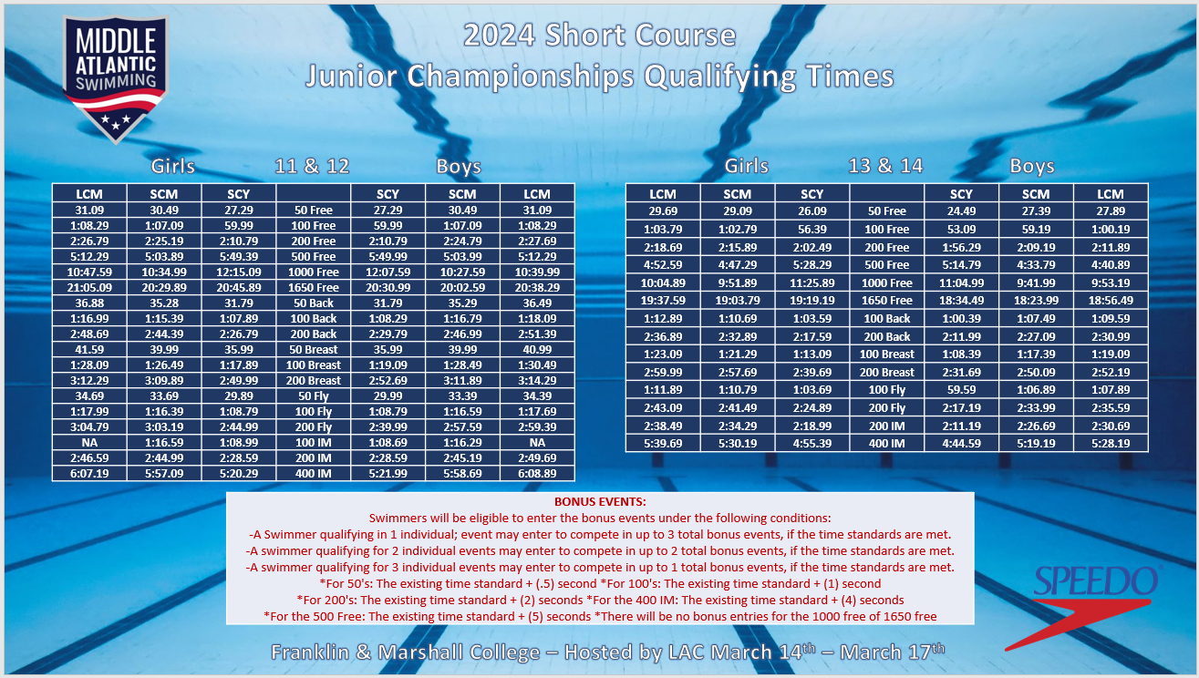Below are the motivational and qualifying time standards. Simply click on the meet in question and it will display the qualifying times.