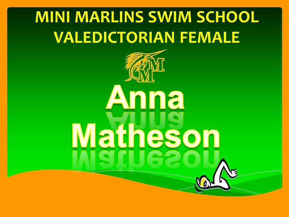 Awarded to one female and one male swimmer from the Mini Marlins Swim School. Swimmers who have displayed excellence in the areas of attendance, stroke technique, and attitude will be considered for this award.