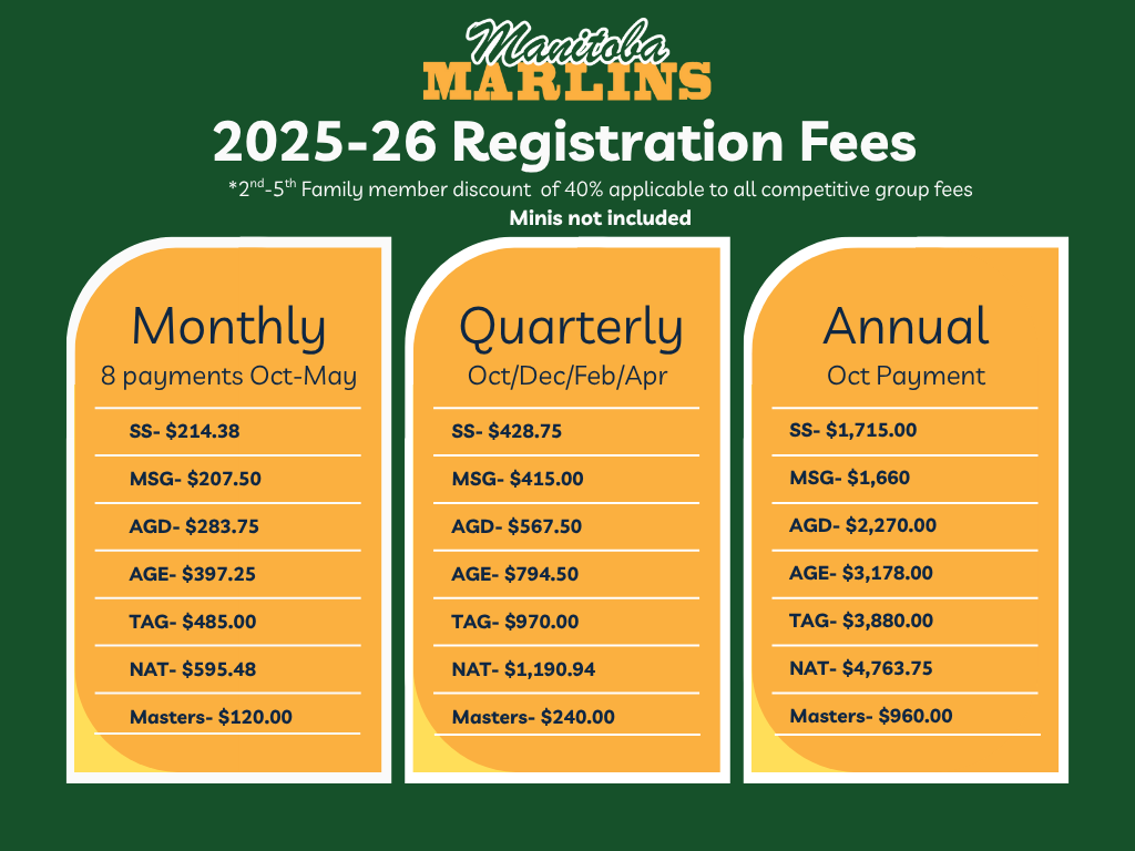 There will be a 40% discount for families on registration fees for additional competitive family members registered in the club.