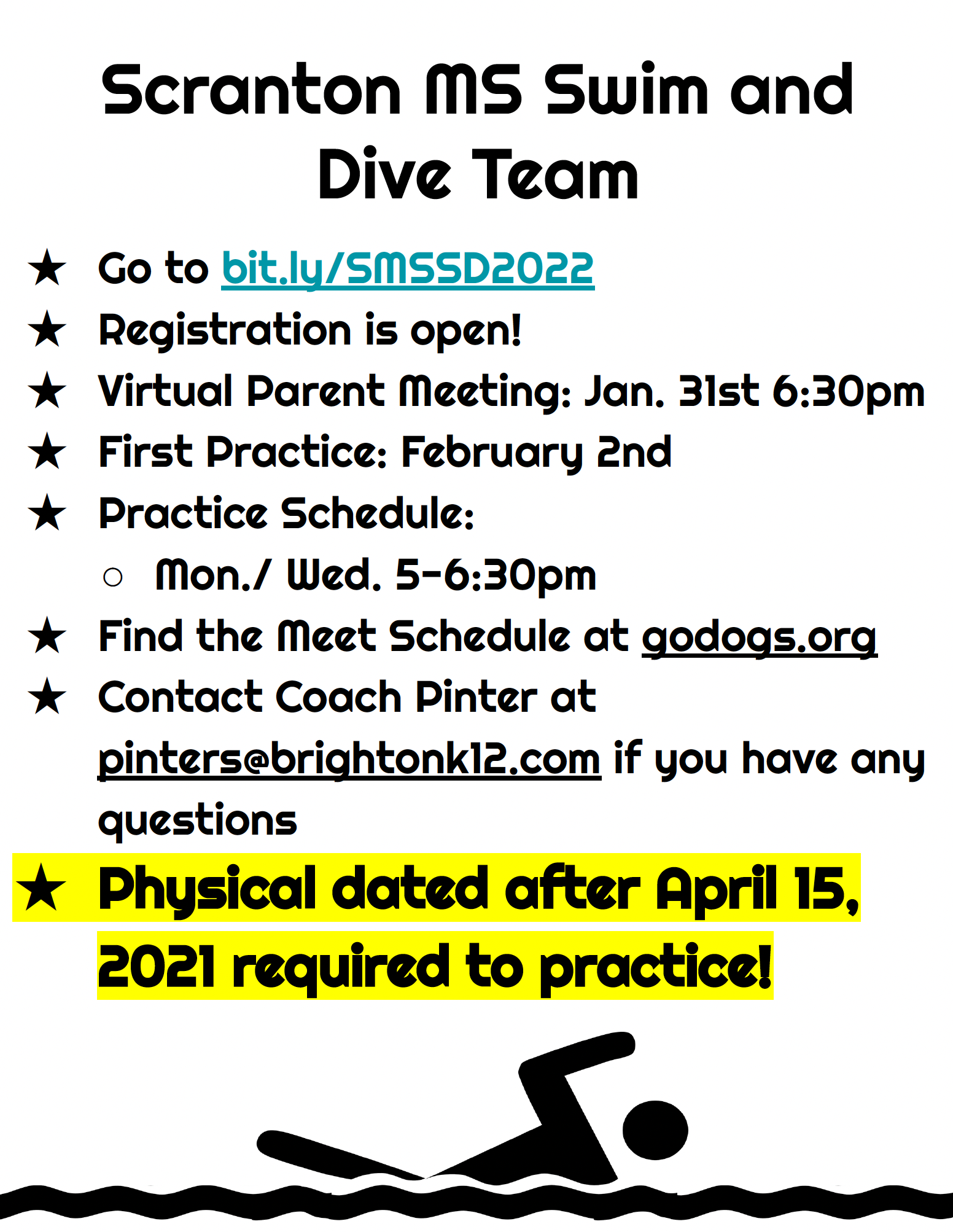 To register to the Scranton MS Swim and Dive Team, please click this link.