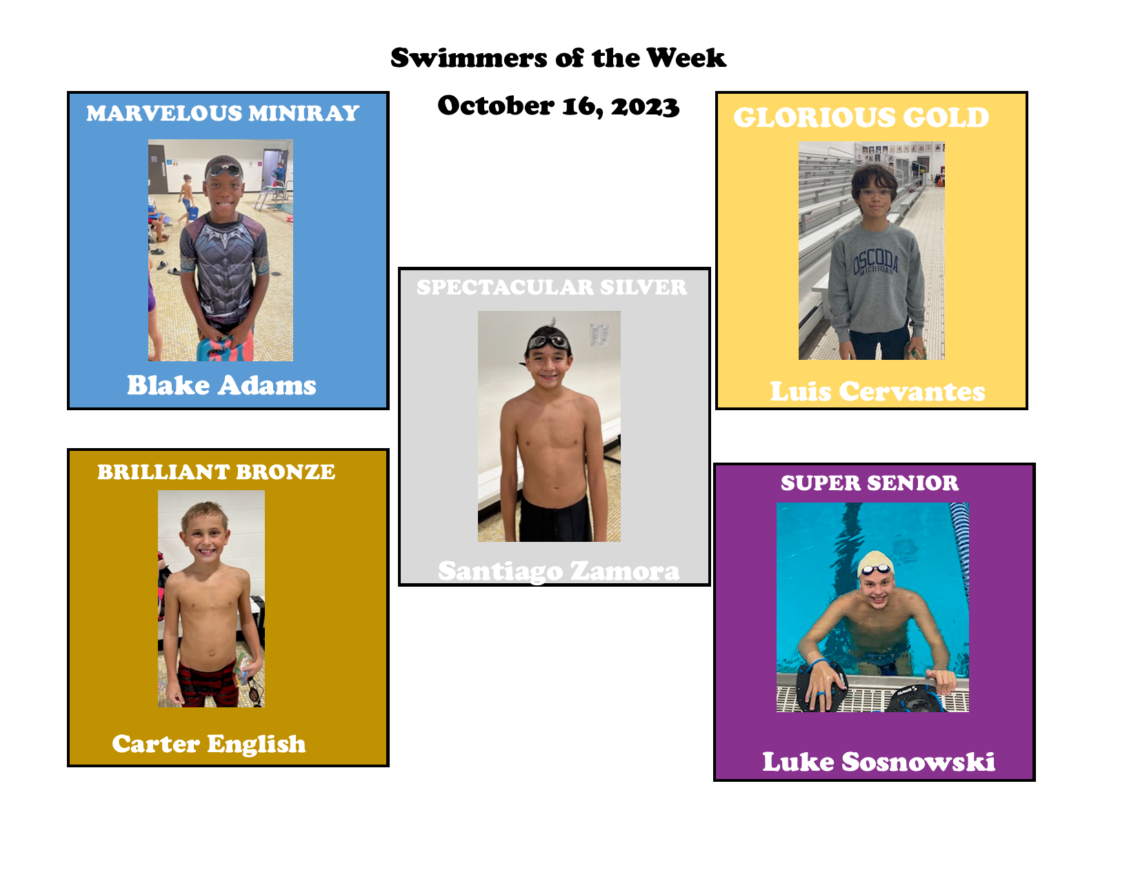 Swimmers of the Week: Congratulations to our swimmers of the week!