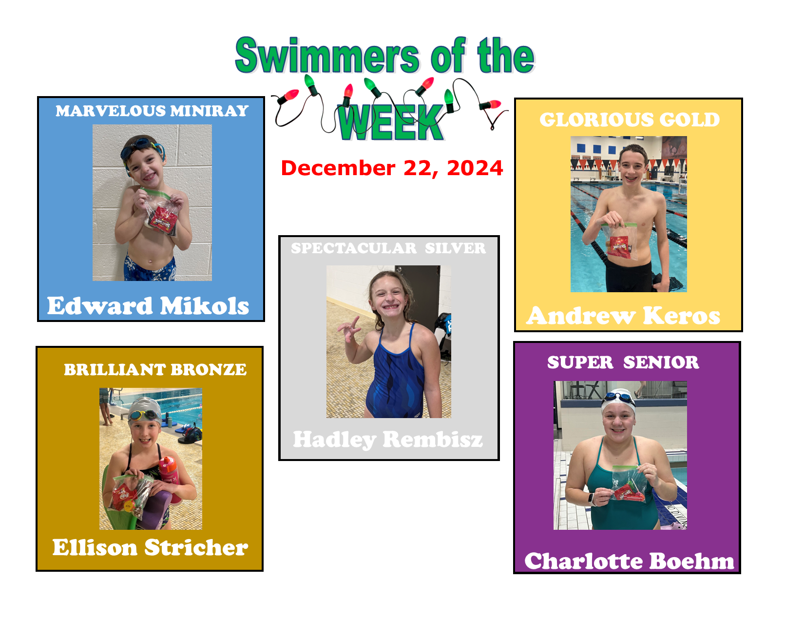 CONGRATULATIONS to our SWIMMERS of TWO Weeks!